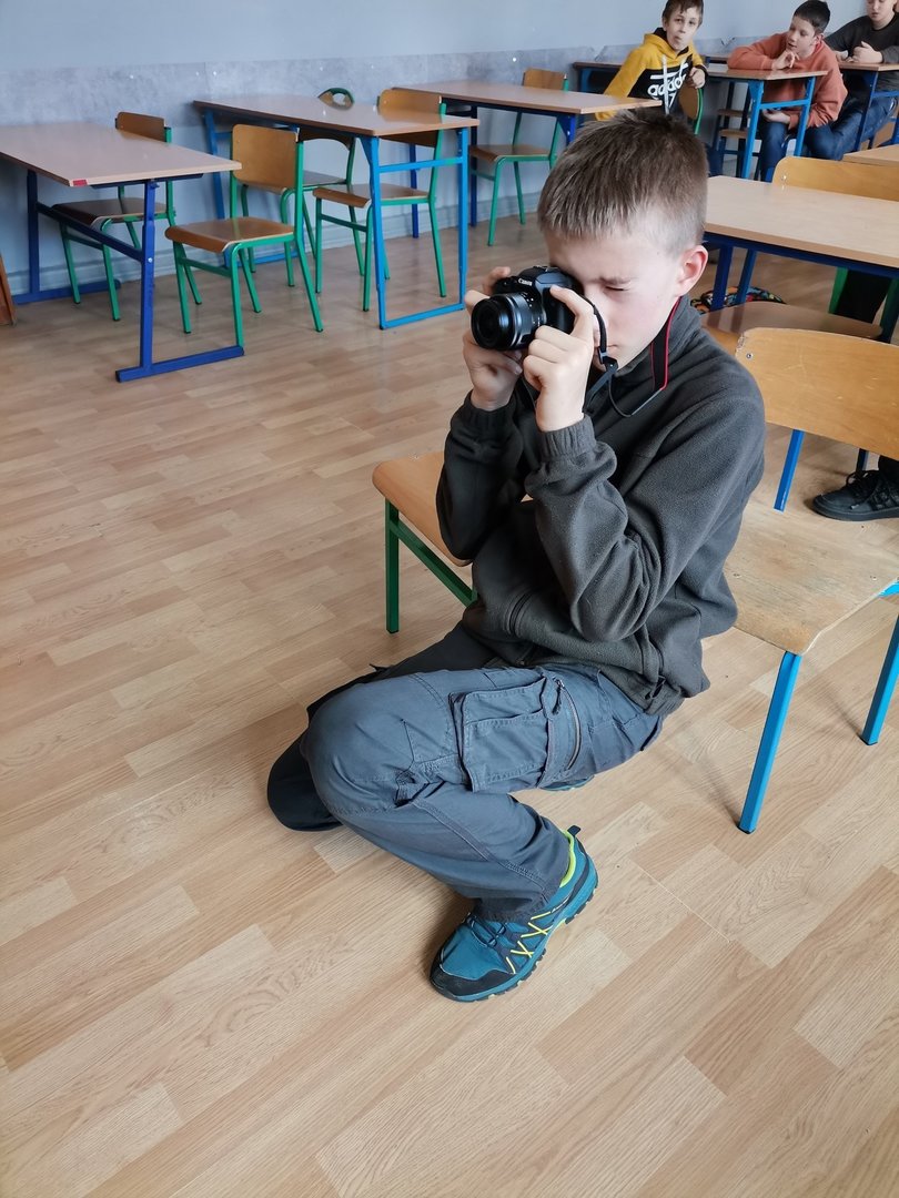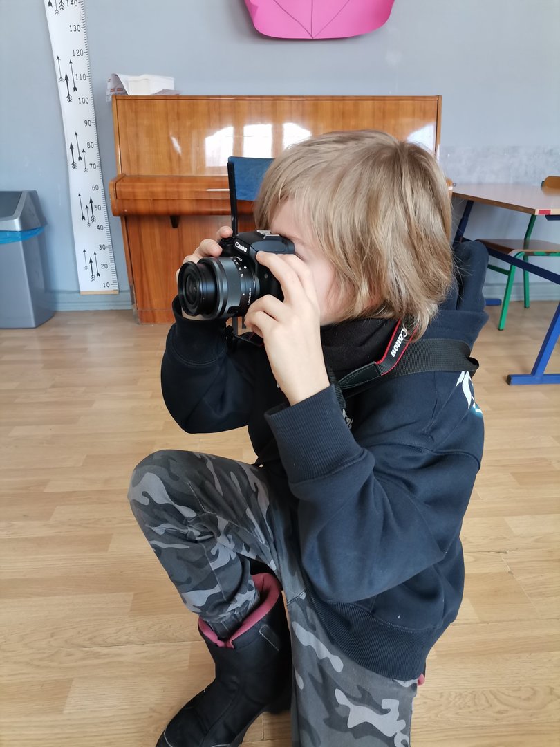 W rolę takich właśnie fotografów wcieli się uczniowie klasy 6 a i 6 b podczas lekcji plastyki. Do wykonania swoich zdjęć posłużył im sprzęt zakupiony w ramach programu Laboatoria Przyszłości, a mianowicie aparat fotograficzny Canon M50Mark II z obiektywem M15-45mm.