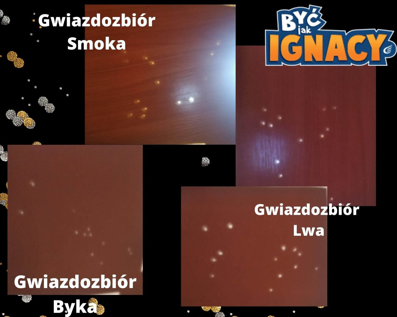 Bardzo ciekawym zadaniem okazało się tworzenie wybranego gwiazdozbioru i poprzez operowanie światłem - odbijanie go na różnych płaszczyznach. Najciekawiej przedstawione gwiazdozbiory naszych uczniów to: