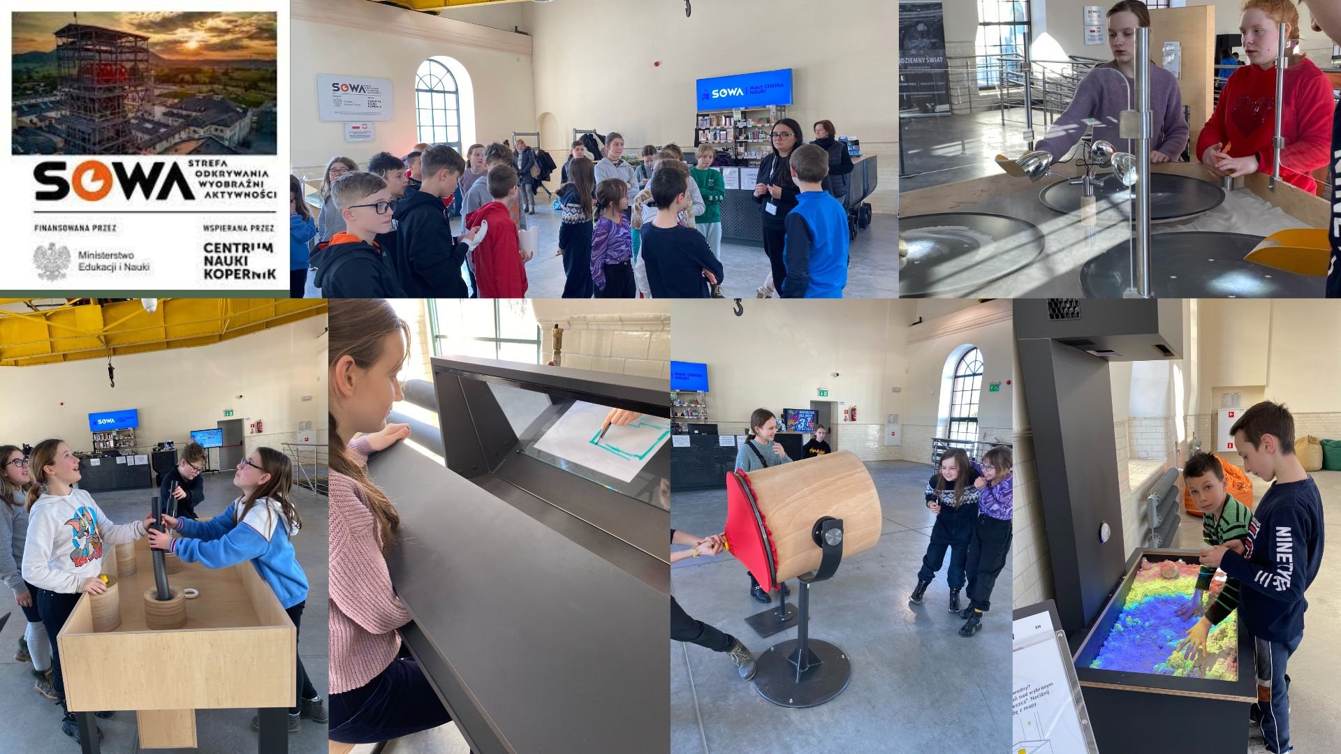 Dużo czasu uczniowie spędzili w Strefie Odkrywania, Wyobraźni i Aktywności – „SOWA” - Minicentrum nauki, doświadczeń i majsterkowania, gdzie zainstalowano 18 interaktywnych stanowisk ekspozycyjnych do samodzielnej pracy polegającej na odkrywaniu,logicznym myśleniu i samodzielnym rozwiązywaniu zagadek. Umieszczono tam doświadczenia przeniesione