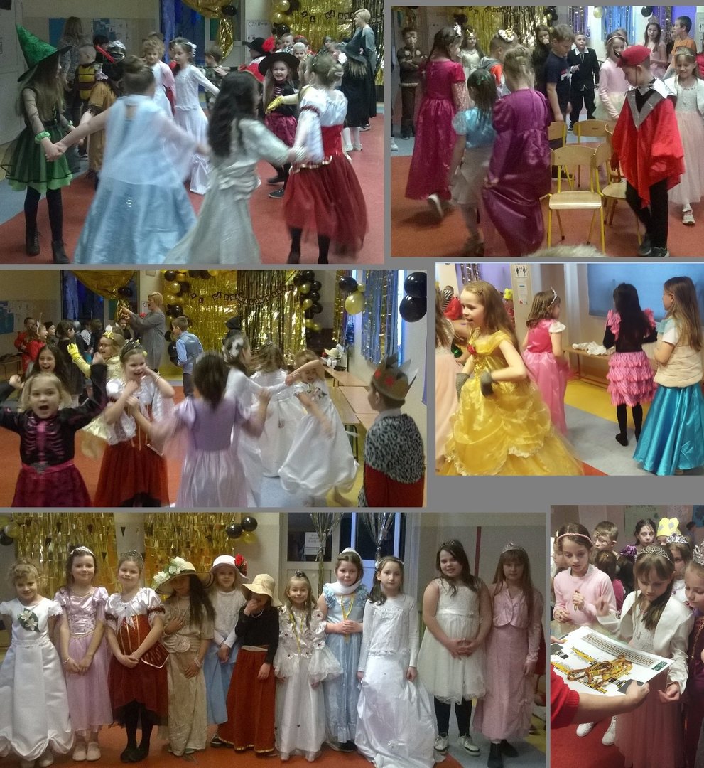 Tuż przed feriami - dla klas I – III przygotowano zabawę karnawałową pod hasłem „Bal u księżnej", jako że rok 2022/2023 jest rokiem Daisy, czyli pani na Zamku Książ oraz księżnej pszczyńskiej.