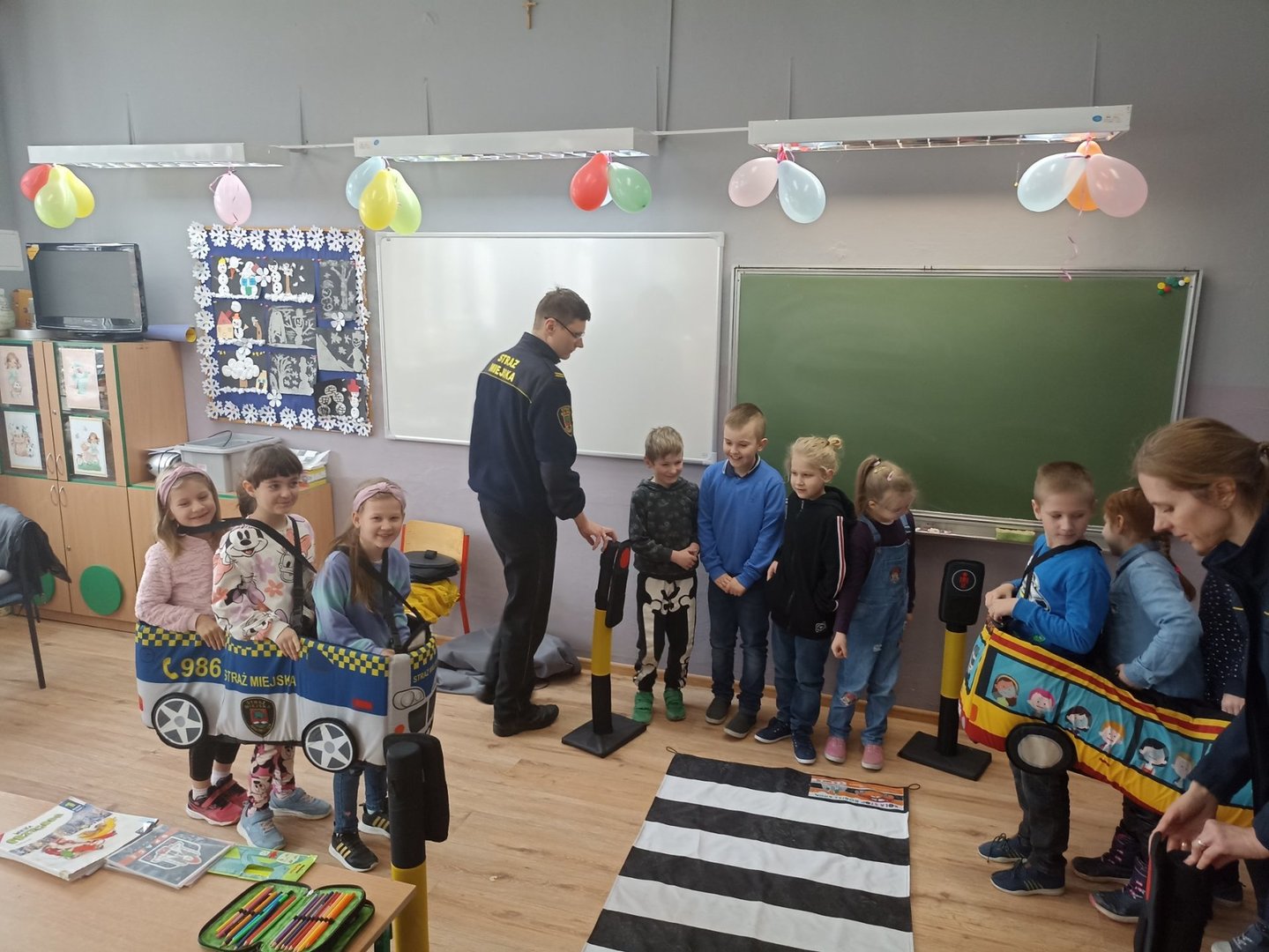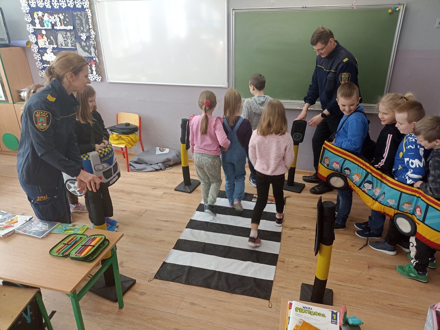 27 lutego odbyło się spotkanie pierwszaków z przedstawicielami Straży Miejskiej.W czasie ćwiczeń praktycznych, z wykorzystaniem autochodzika i znaków drogowych,uczniowie przypomnieli sobie i utrwalili bezpieczne zasady ruchu drogowego.Była to świetna zabawa,dzięki której są świadomymi i odpowiedzialnymi uczestnikami ruchu drogowego.