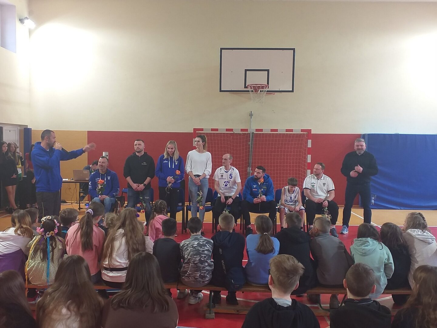 Z przyjemnością gościliśmy: p. M. Wożniak – dyrektor Środowiskowego Domu Pomocy Społecznej wraz z zawodnikiem Ksawerym Szalem, Emilię Kaczkowską – uczennicę z IV LO, tiktokerkę, p. A. Chlebdę – członka Zarządu Stowarzyszenie Górnik Wałbrzych 2010, pana P. Domoradzkiego – trenera grup młodzieżowych, p. M. Balcerowskiego – trenera Reprezentacji Polski oraz Górnik Wałbrzych w koszykówce na wózkach, p. Bartłomieja Ratajczaka – kapitana Górnik Trans.Eu Zamek Książ Wałbrzych, Mikołaja Stywryna – minikoszykówka chłopców Górnik Wałbrzych, Damiana Siporskiego - terapia ruchowa.