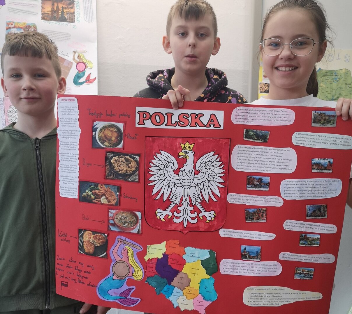 W zespołach 3-4 osobowych uczniowie stworzyli prace pod hasłem A to Polska właśnie… Nie zabrakło symboli narodowych, pięknych krajobrazów, ciekawych zabytków, wybitnych Polaków czy smakowitych potraw 😊