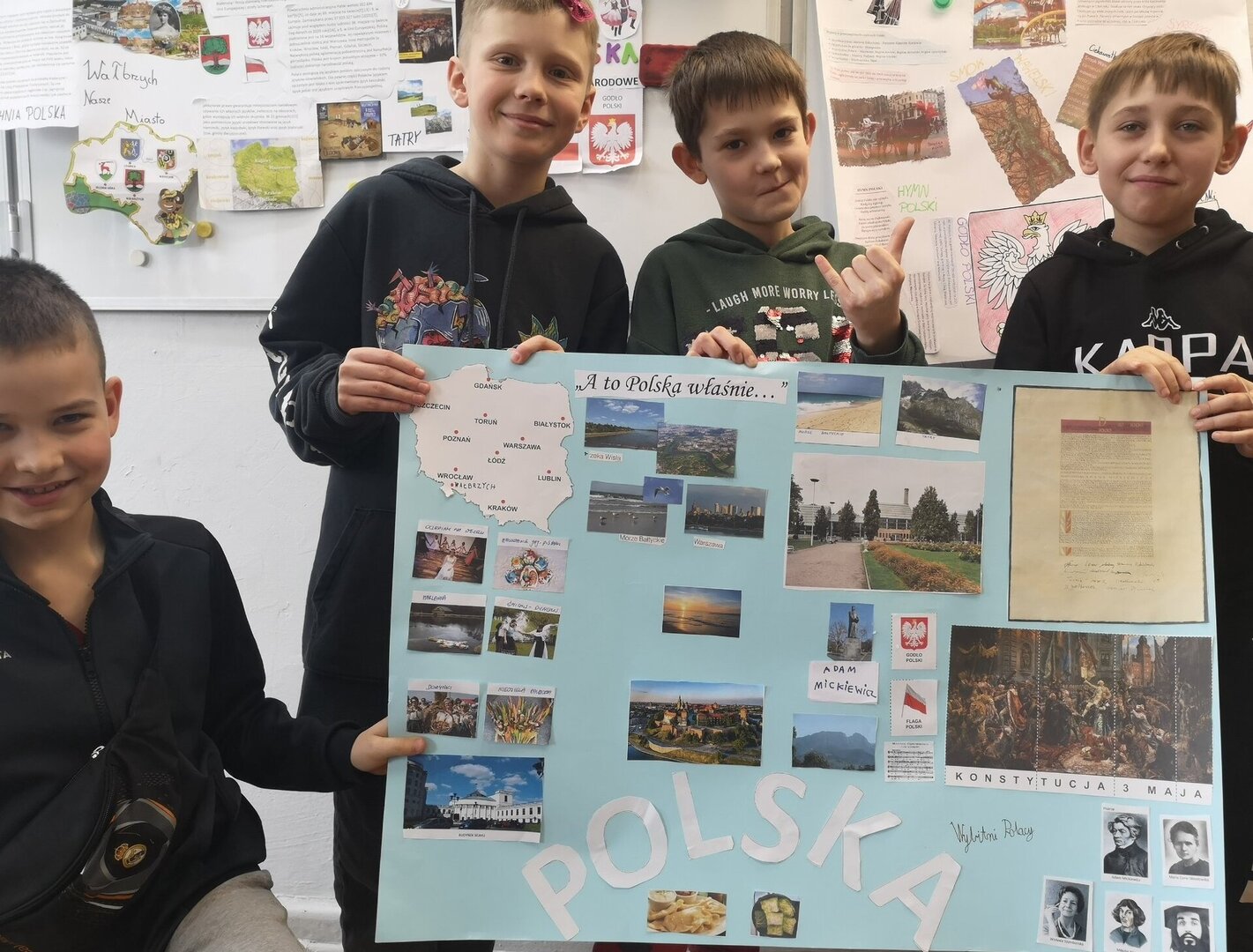 Klasy 4 zakończyły projekt podsumowujący temat Opisać Polskę i przygotowały na lekcjach języka polskiego plakaty promujące i przedstawiające naszą ojczyznę.