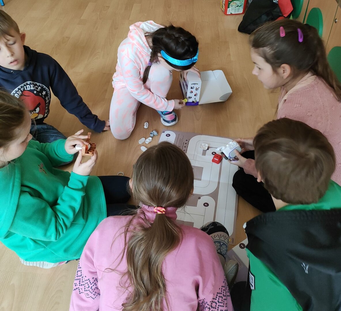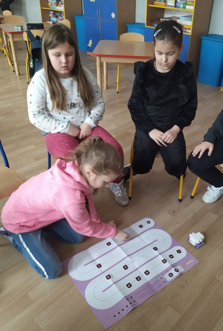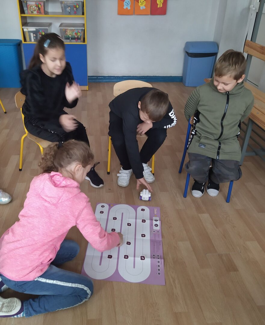 W kwietniu w ramach zajęć „Laboratoria Przyszłości” uczniowie klasy 2 c obsługiwali Botzees Mini - robota, którego możemy programować bez komputera. Dzieci mogły kontrolować ruch robota, umieszczając go na specjalnie przygotowanych mapach lub na narysowanych samodzielnie trasach. Dodatkowe karty umieszczone na trasie robota kontrolowały jego ruch, wydawane dźwięki i “mimikę” Mini.