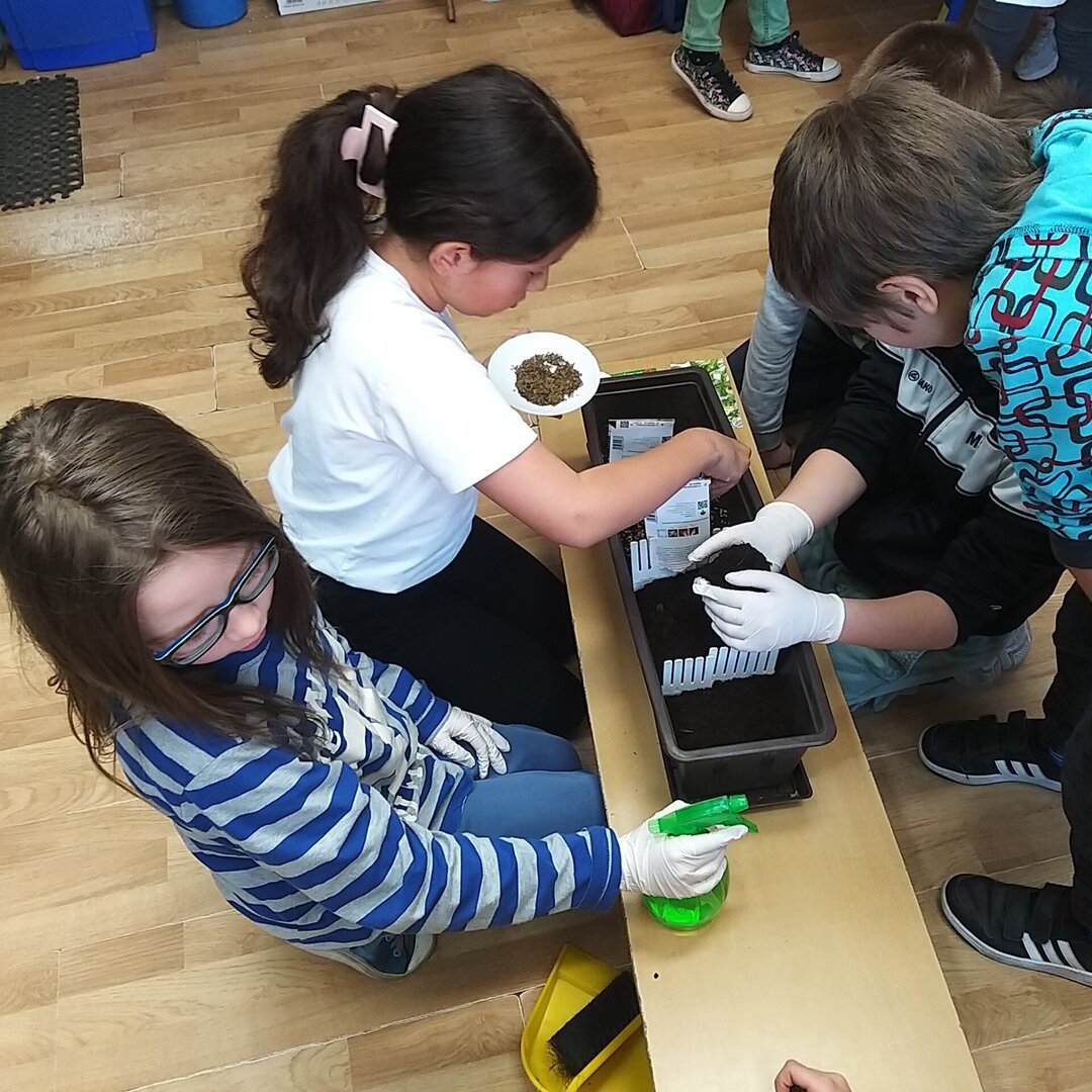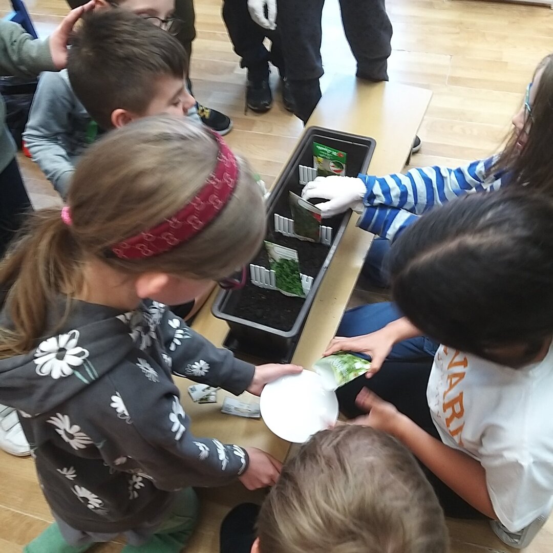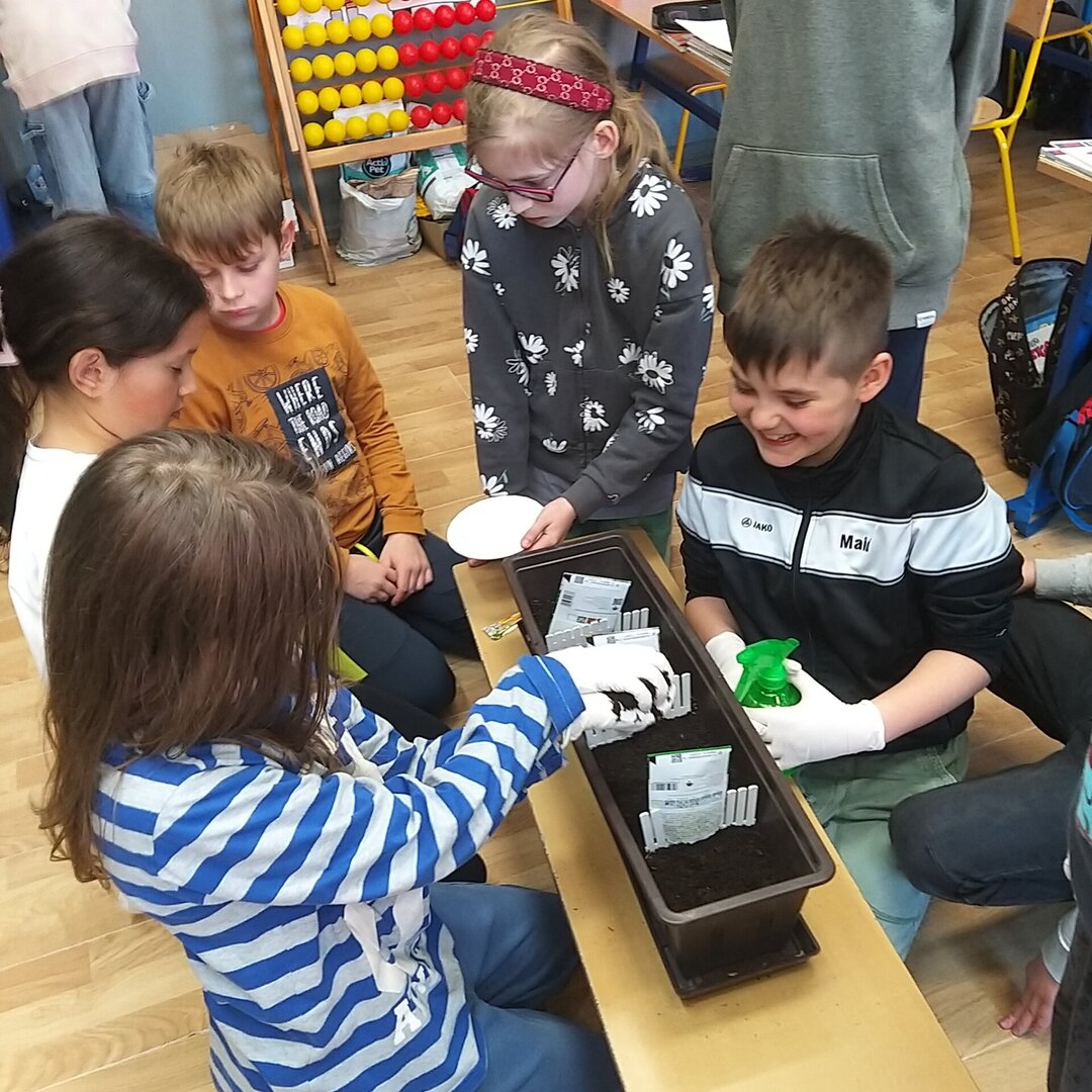 Wszyscy obserwują roślinki i czekają na zdrowe dodatki do kanapek.