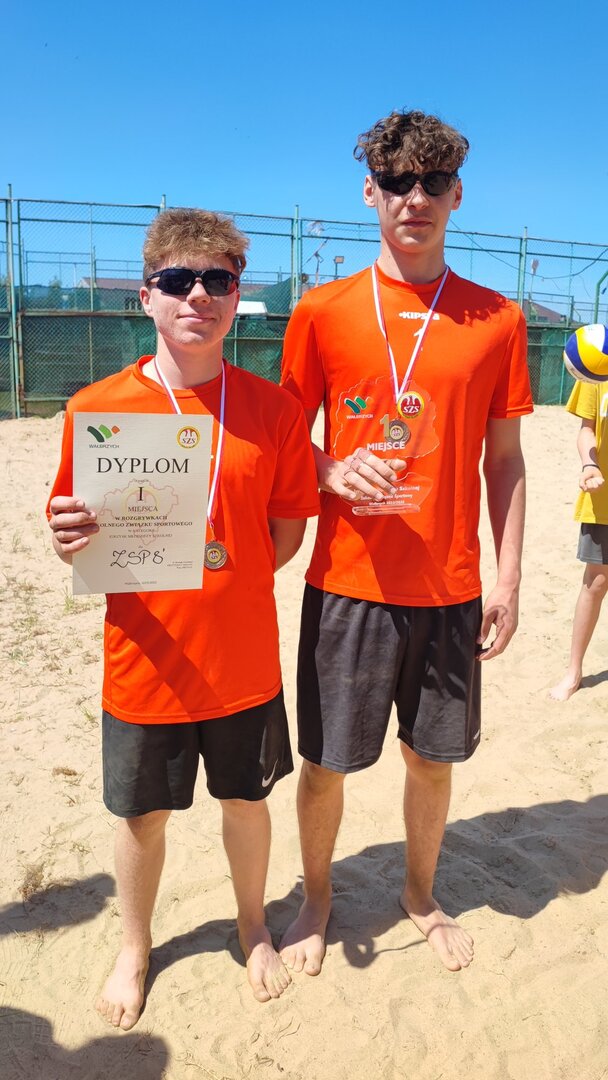 Kolejne złoto dla ZSP nr 8. Tym razem Seweryn Zająć w parze z Fabianem Cerkiem nie mieli sobie równych w Mistrzostwach Wałbrzycha w siatkówce plażowej wygrywając wszystkie swoje mecze po 2:0. 6 miejsce zajęła nasza druga para: Sebastian Krupa z Oliwierem Cegiełą. Gratulujemy i życzymy powodzenia na finale strefy, który odbędzie się już 7 czerwca w Świdnicy.