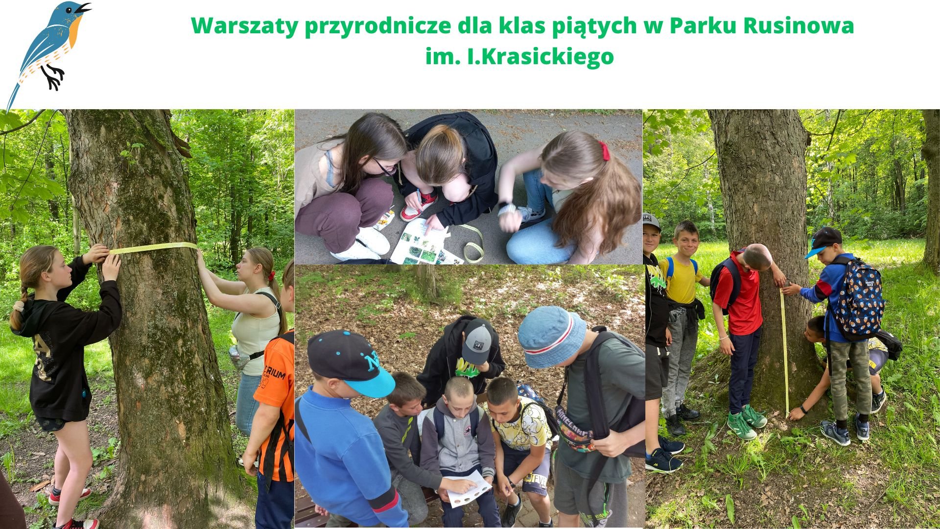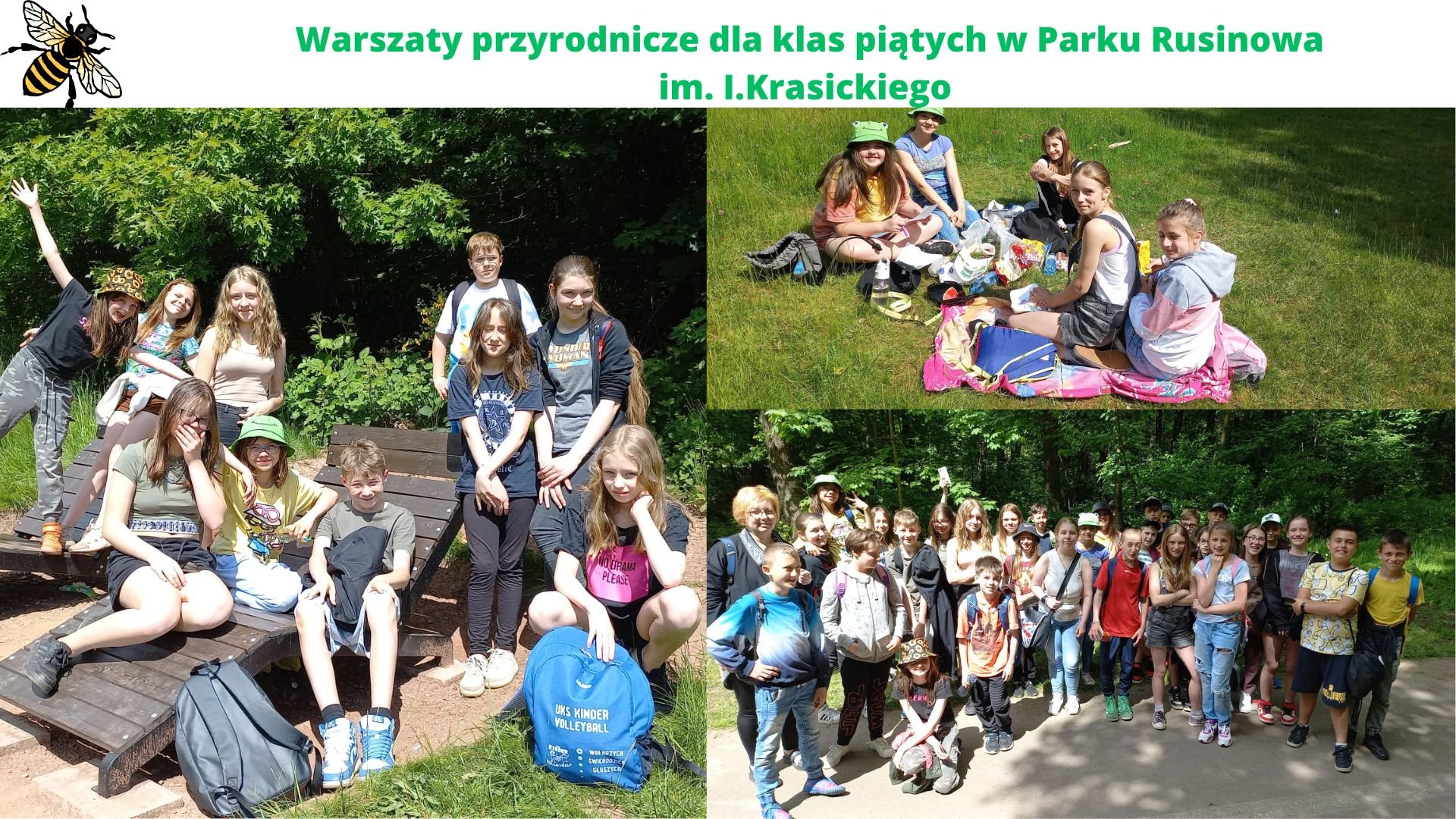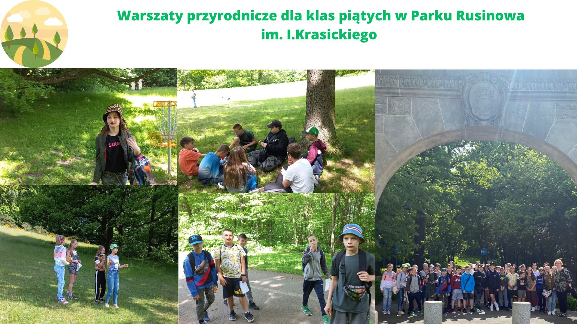 Uczniowie klas piątych wzięli udział w warsztatach przyrodniczych w Parku Miejskim im. I. Krasickiego zwanego Parkiem Rusinowa.