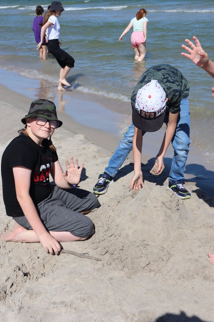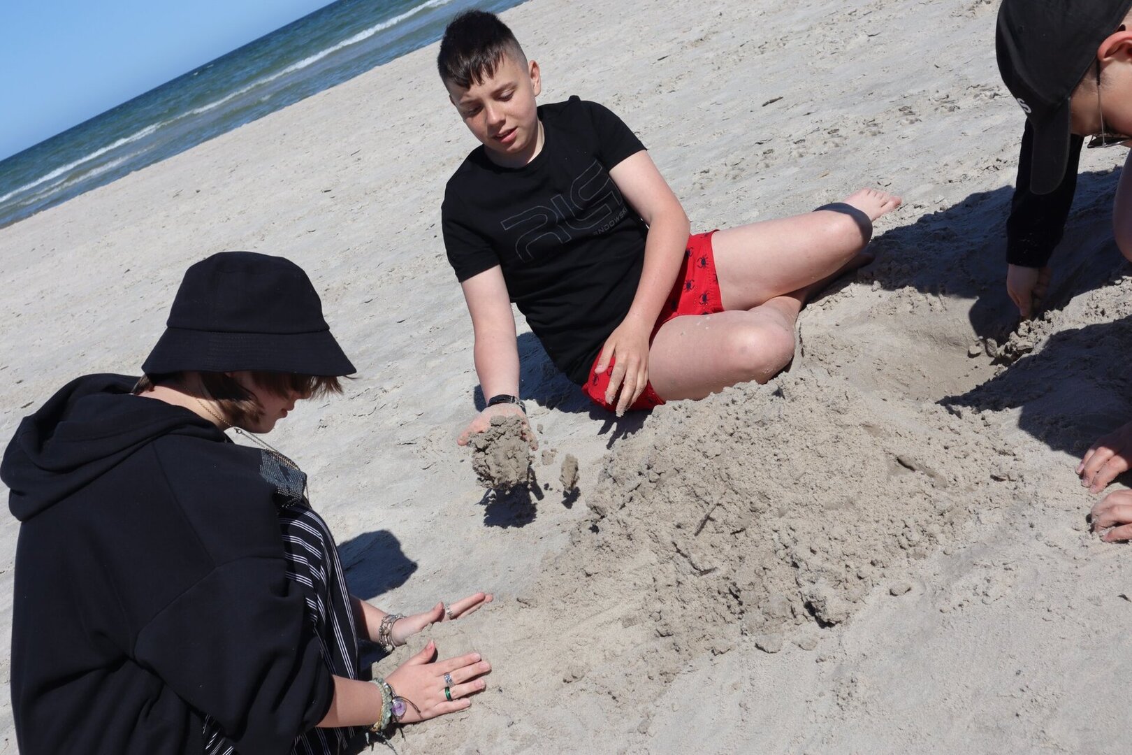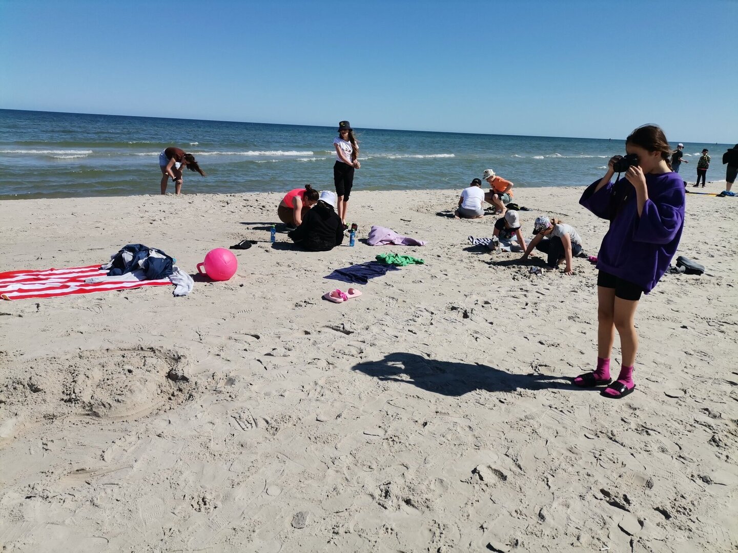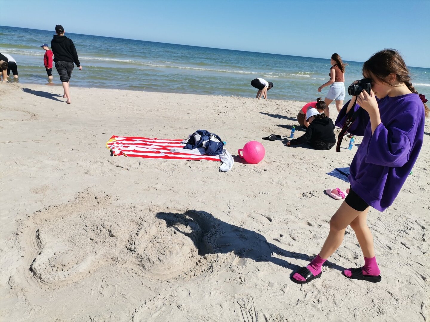 Podczas pobytu na "zielonej szkole" nasi uczniowie mieli niepowtarzalną okazję uczestniczyć w plenerowej lekcji plastyki na plaży w Łebie.