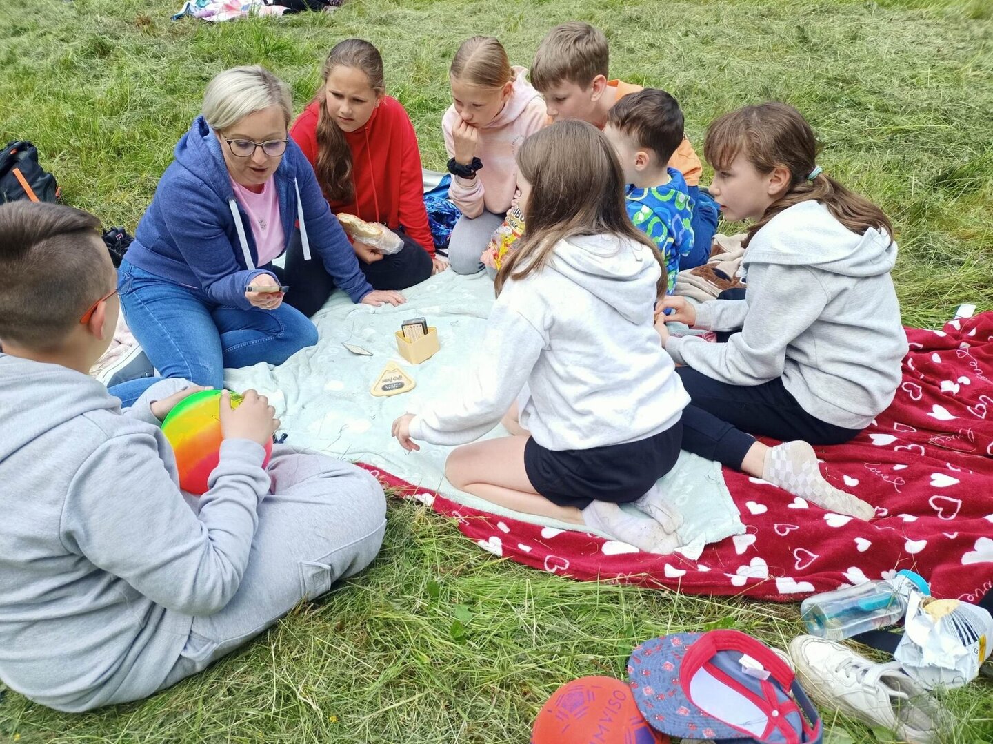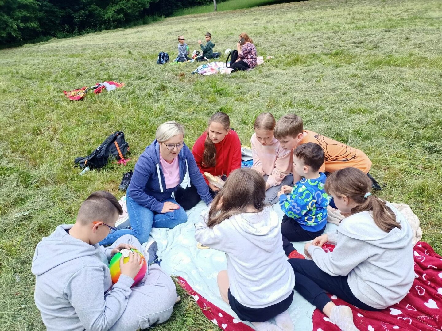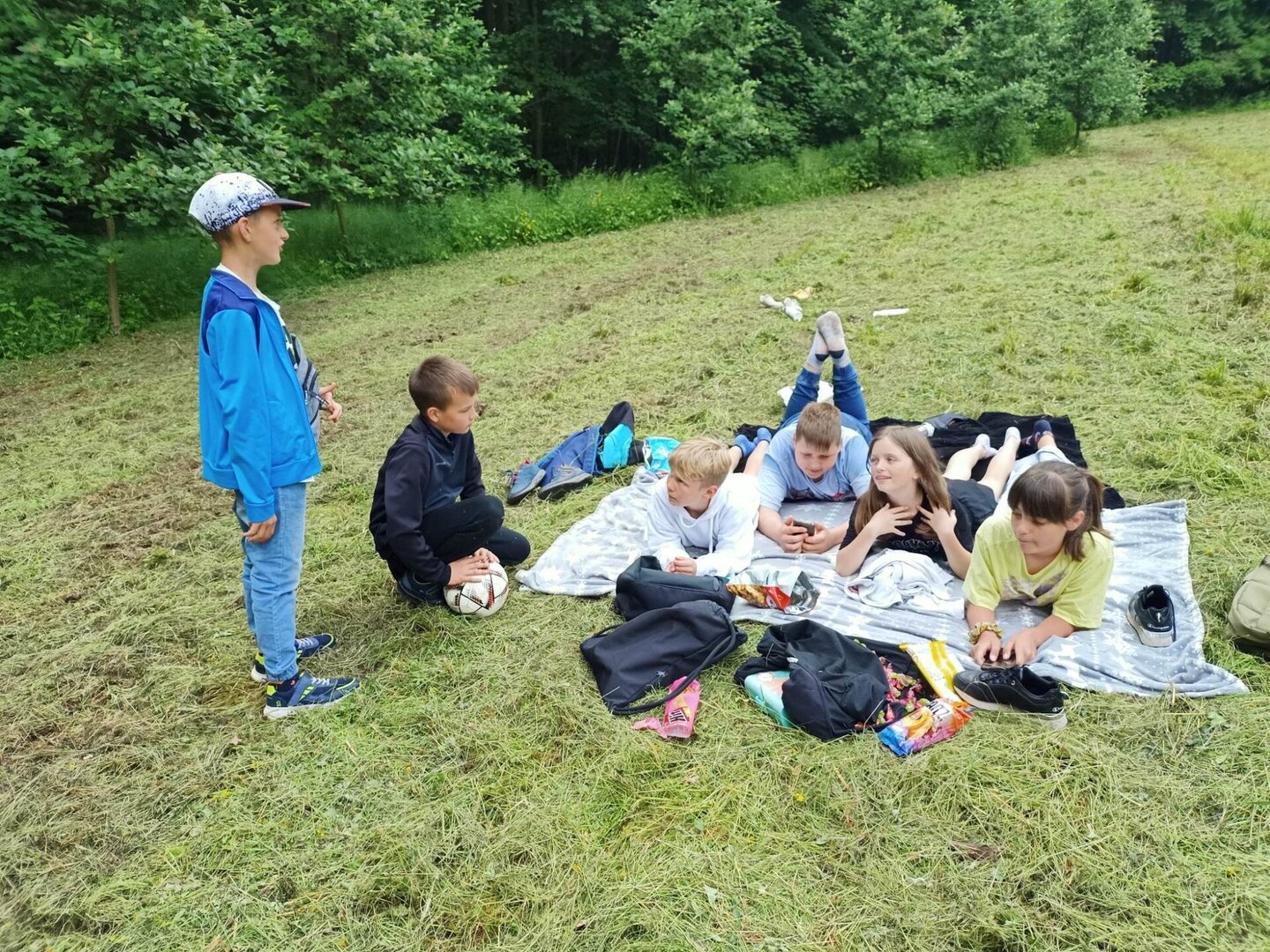 W środę 14.06.2023 r. uczniowie klasy 4 b wraz z rodzicami i wychowawcą udali się na piknik klasowy. Każdy przyniósł ze sobą koc i coś ulubionego do jedzenia, a także gry planszowe i piłki.