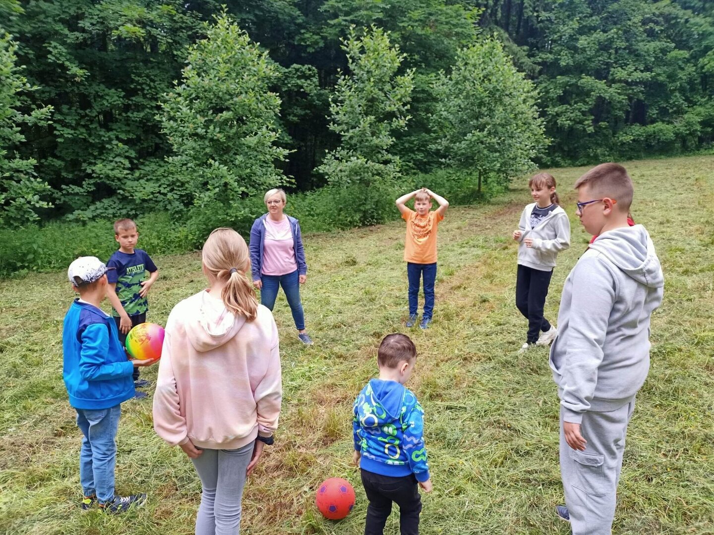 Najpierw rozegraliśmy krótki mecz piłki nożnej. Nie ułatwiała nam tego murawa, bo biegaliśmy po świeżo skoszonej trawie, ale wszyscy z zaangażowaniem próbowali strzelić gola. Nie wiemy kto wygrał - była to rzecz mało istotna, ponieważ liczyła się dobra zabawa.