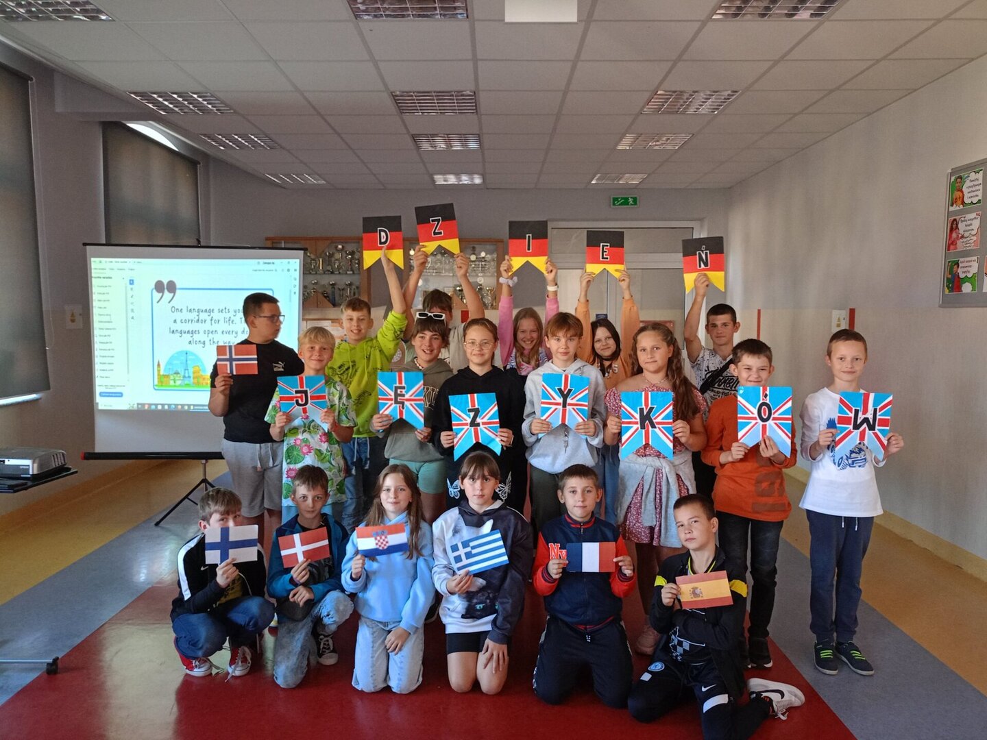 A wszystko we wspaniałej, "lingwistycznej" scenerii przygotowanej przez uczniów. Dziękujemy za wspólną zabawę i wiedzę!