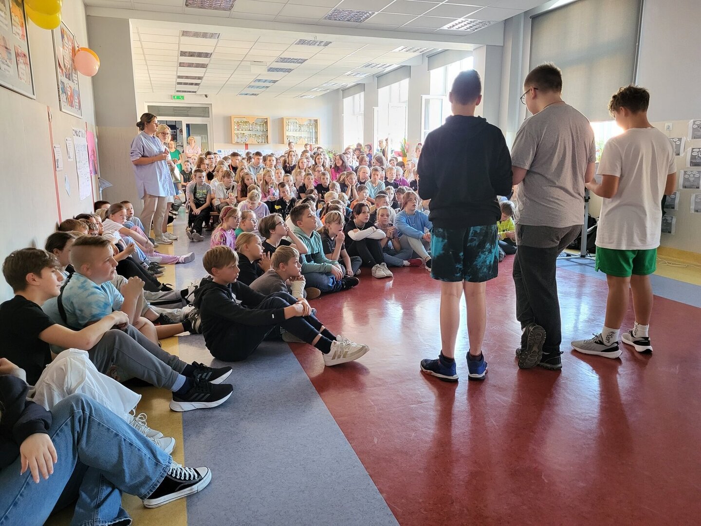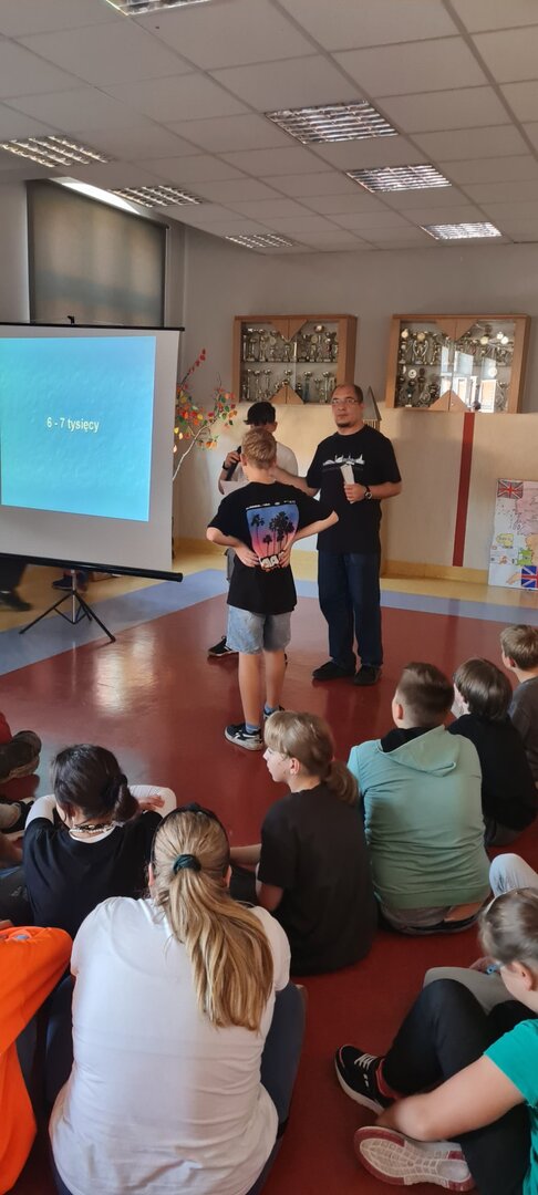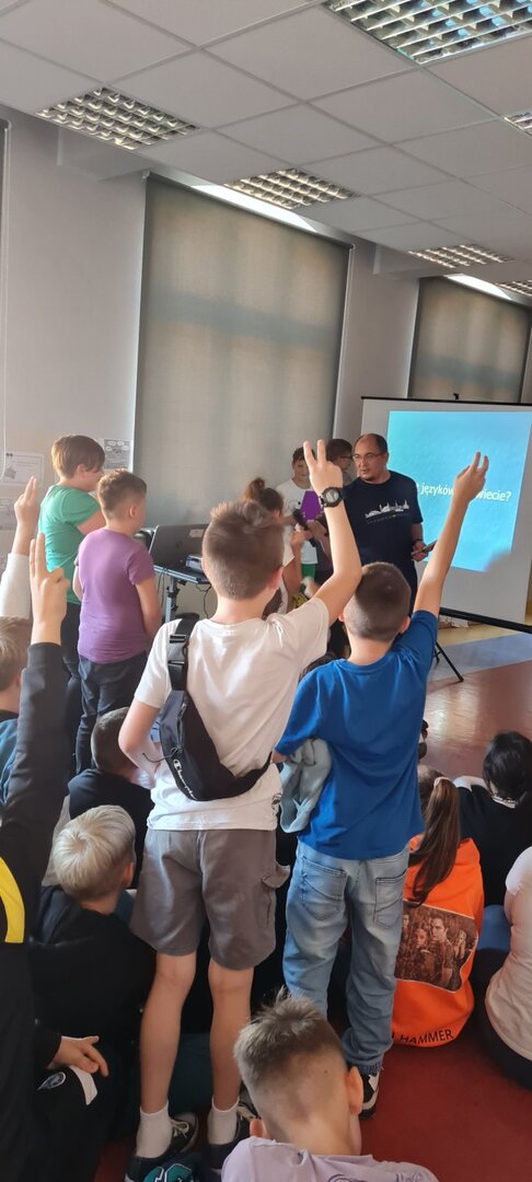 Dodajmy: w poszerzaniu językowych horyzontów młodszym kolegom i koleżankom pomagali uczniowie klas 8 oraz p. Sławomir Skonieczny (nauczyciel j.angielskiego), prowadzący wydarzenie.