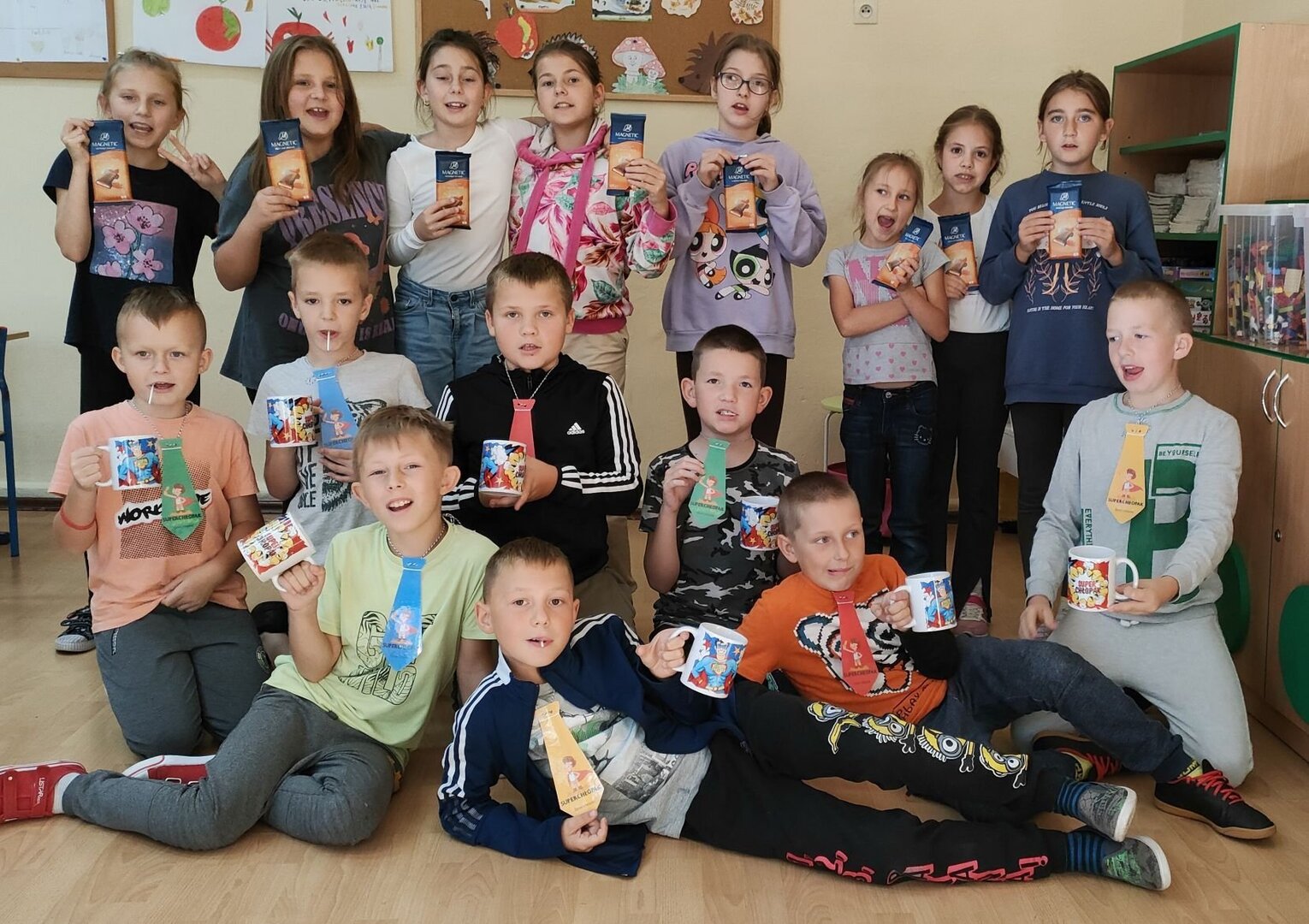 Mali panowie zostali uroczyście przywitani przez swoje koleżanki, otrzymali też krawaty "Superchłopaka" oraz dedykowane im kubki :).