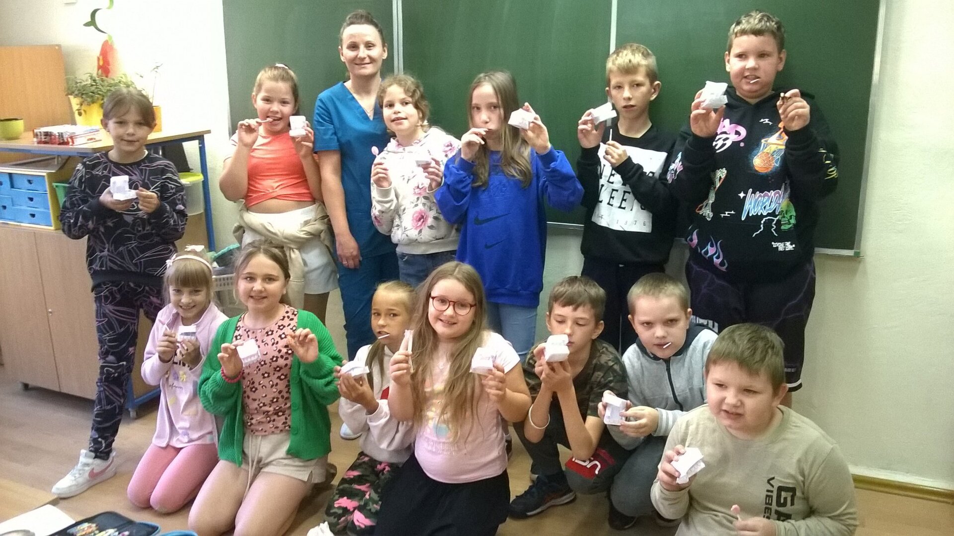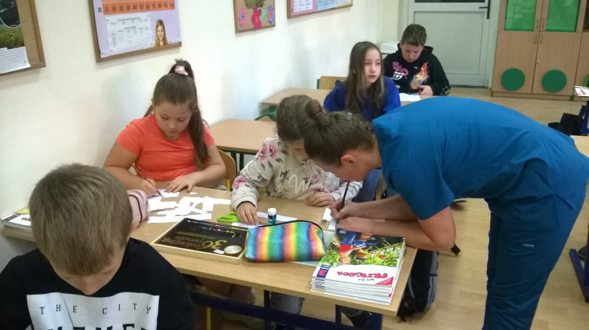 Pani Magda pochwaliła uczniów za ich zaangażowanie i za to "mali stomatolodzy" otrzymali „zdrowe lizaki” oraz wylosowali w nagrodę miniaturki zwierząt.
