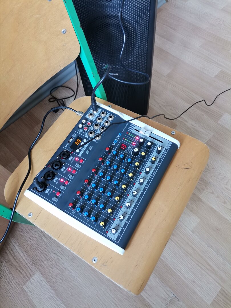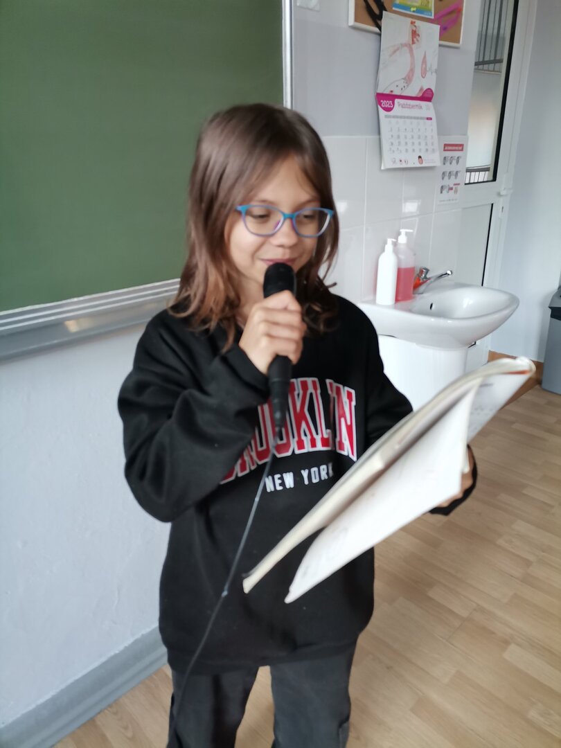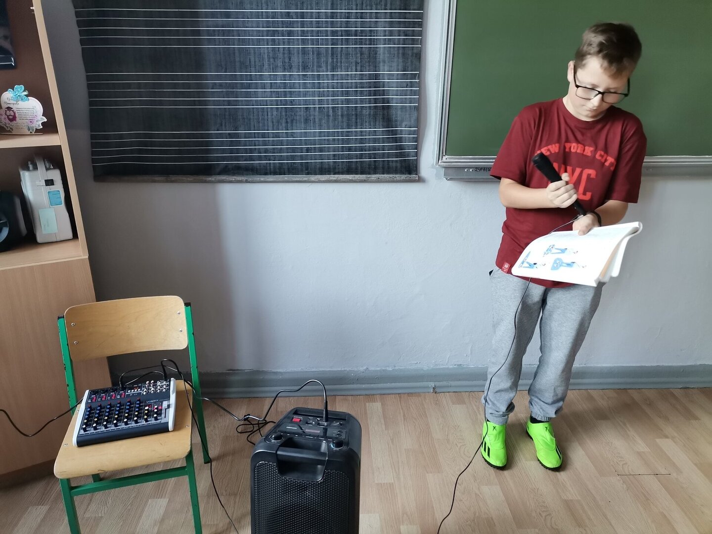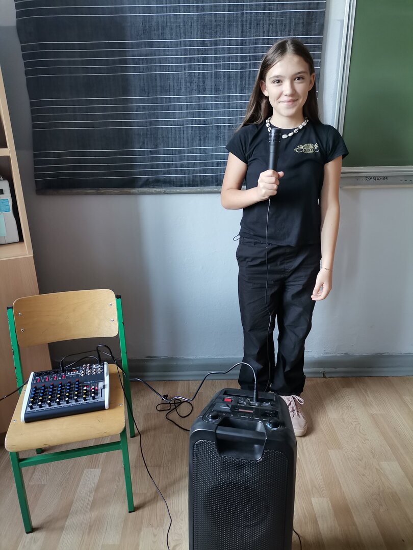 Na dzisiejszej lekcji muzyki uczniowie klasy 6 "b" mogli poczuć się jak na estradzie! Zmierzyli się bowiem z solowym śpiewem a do ćwiczeń wokalnych wykorzystali sprzęt elektroniczny zakupiony w ramach programu Laboratoria Przyszłości (Music Mixer).