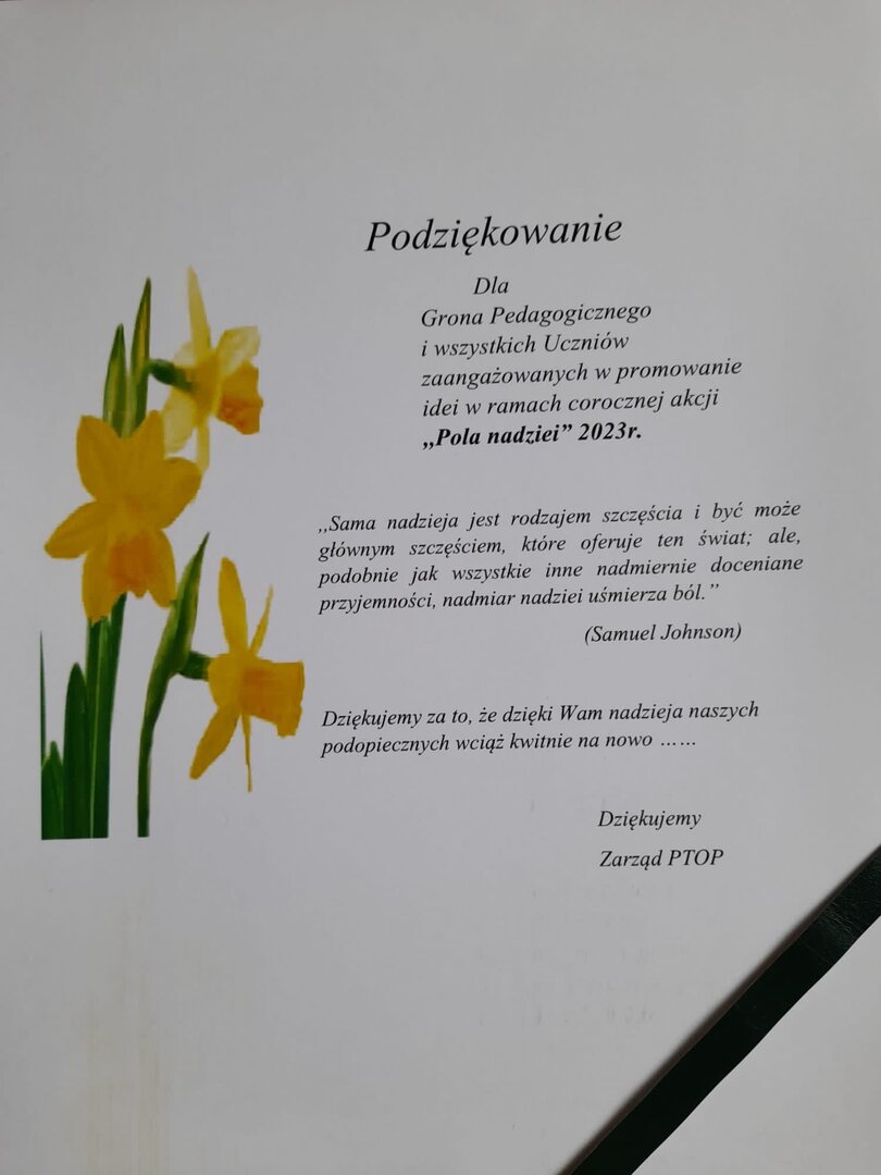 "Pola Nadziei" to coroczna akcja, której celem jest szerzenie idei hospicyjnej, uświadamianie i uwrażliwianie młodych ludzi na problemy osób chorych.