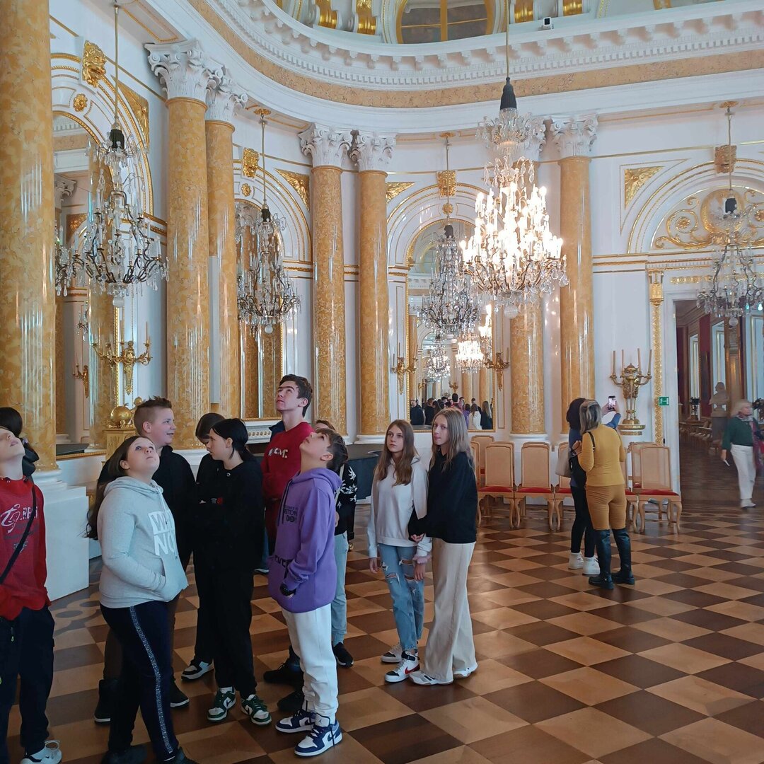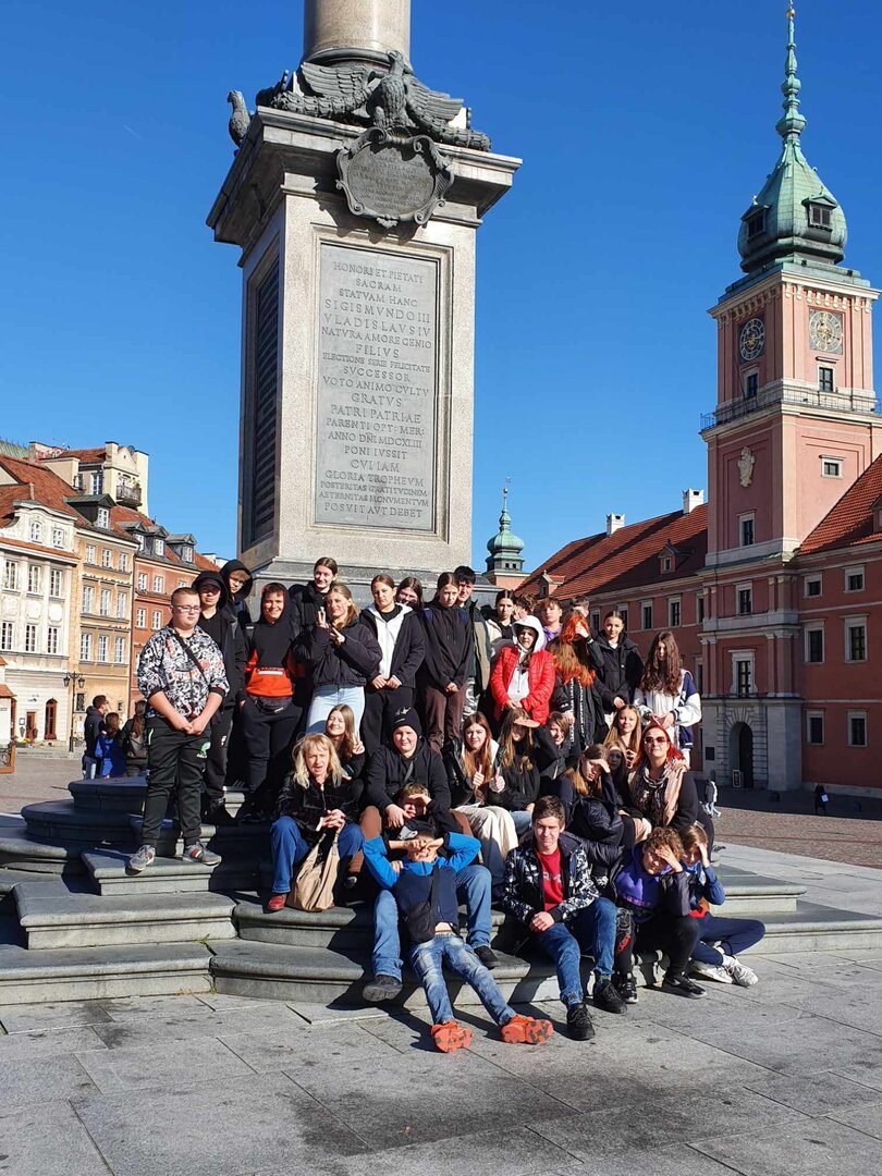 Zwiedzanie tego dnia zaczęliśmy od Zamek Królewski w Warszawie, gdzie największe wrażenie zrobił na nas Pokój Marmurowy z przepięknymi zdobieniami i iście królewskim przepychem. Zachwycaliśmy się ogromnymi dziełami Jana Matejki, które w końcu mogliśmy podziwiać na żywo, a nie tylko w podręczniku do historii. Ważnym punktem było dla nas odwiedzenie Sali Senatorskiej, w której uchwalono Konstytucję 3 maja w 1792 r.