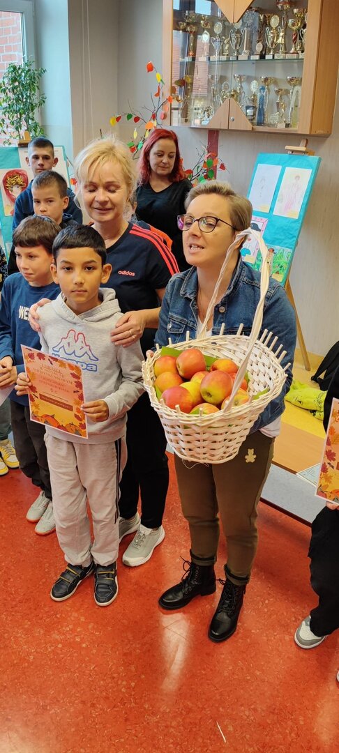 Wczoraj przedstawiciele wyróżnionych zespołów odebrali z rąk p. Agaty Guzek oraz p. dyrektor Renaty Gibes dyplomy, zaś mistrzowie - główną nagrodę: kosz pełen słodkich i zdrowych jabłek!