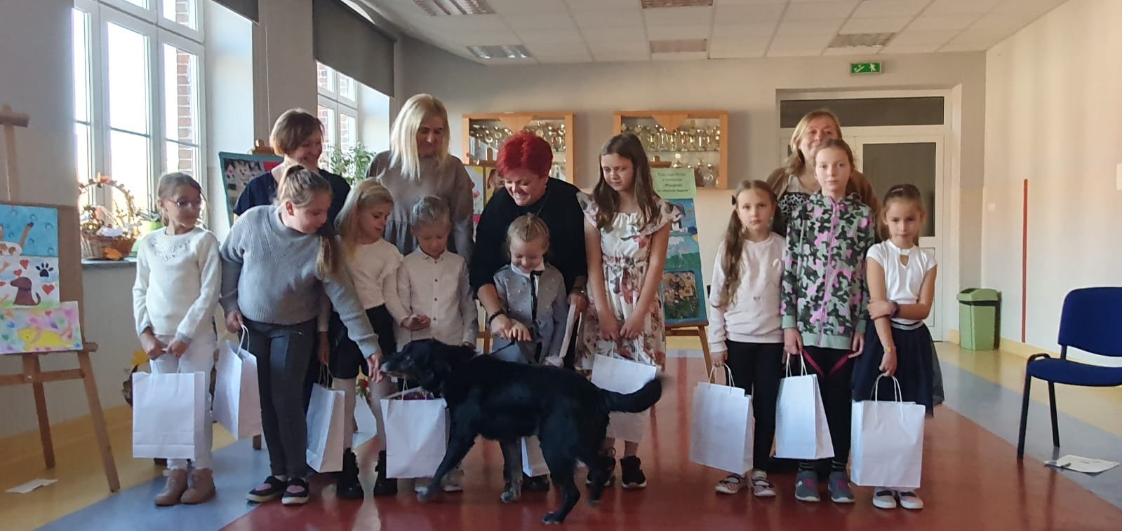 Do Zespołu Szkolno - Przedszkolnyego nr 8 w Wałbrzychu przybyli zaproszeni goście - laureaci konkursu oraz przedstawiciele wałbrzyskiego Schroniska dla Zwierząt.