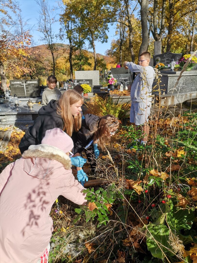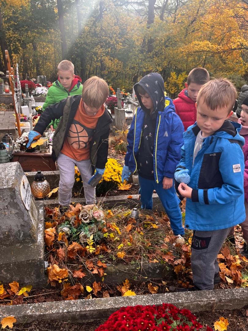- dzieci ze świetlicy odwiedziły pobliski cmentarz i uporządkowały zaniedbane groby oraz wykonały gazetkę w sali
