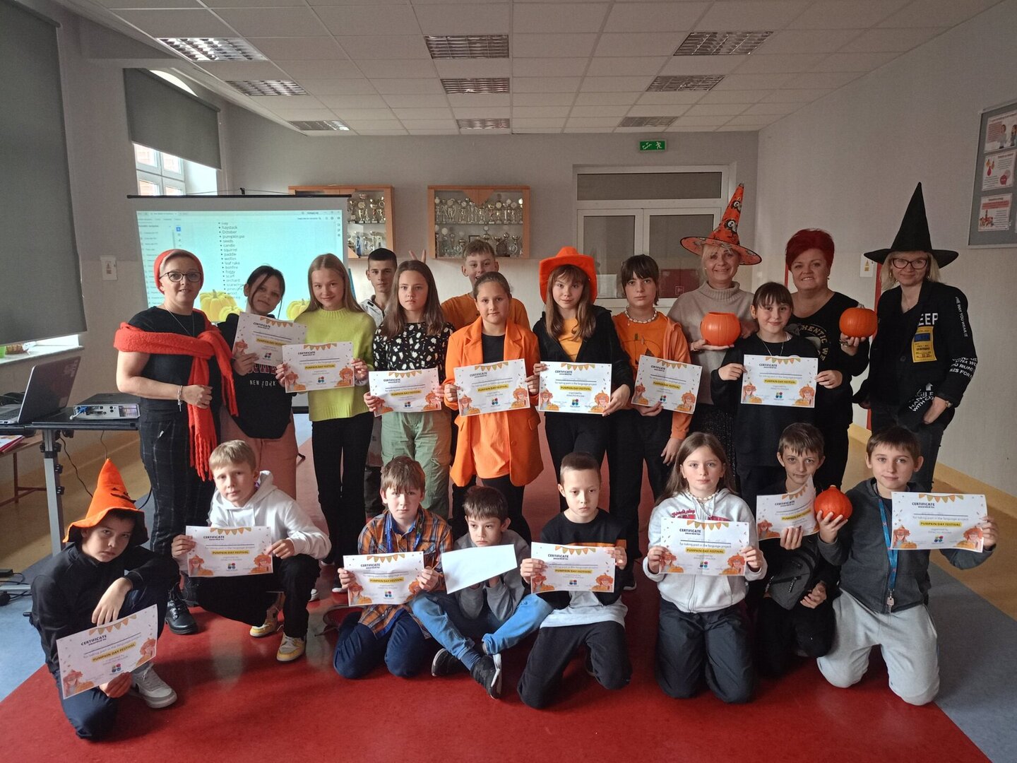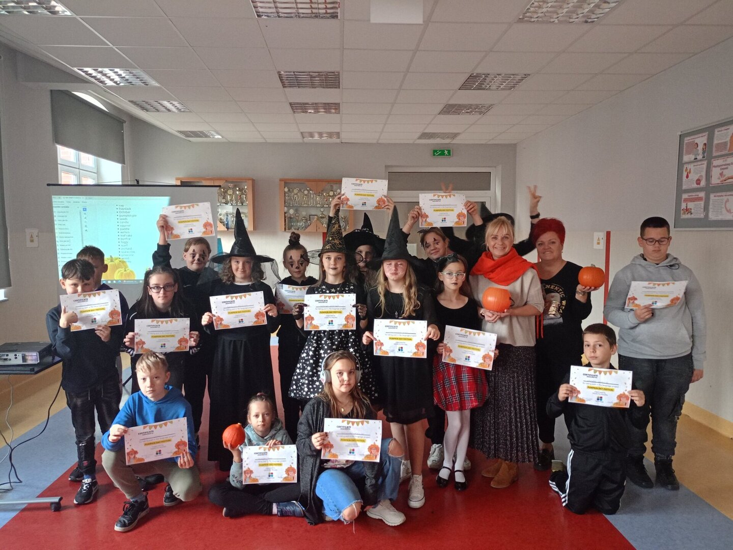 Były cukierki, certyfikaty i wspólne zdjęcia, na których uwieczniliśmy nie tylko zespoły 5 "a", 5 "b" i 5 "c", ale także ich wychowawców i nauczycieli (A. Osińska-Szpur, Agata Guzek, Dagmara Chak) w przebraniach.