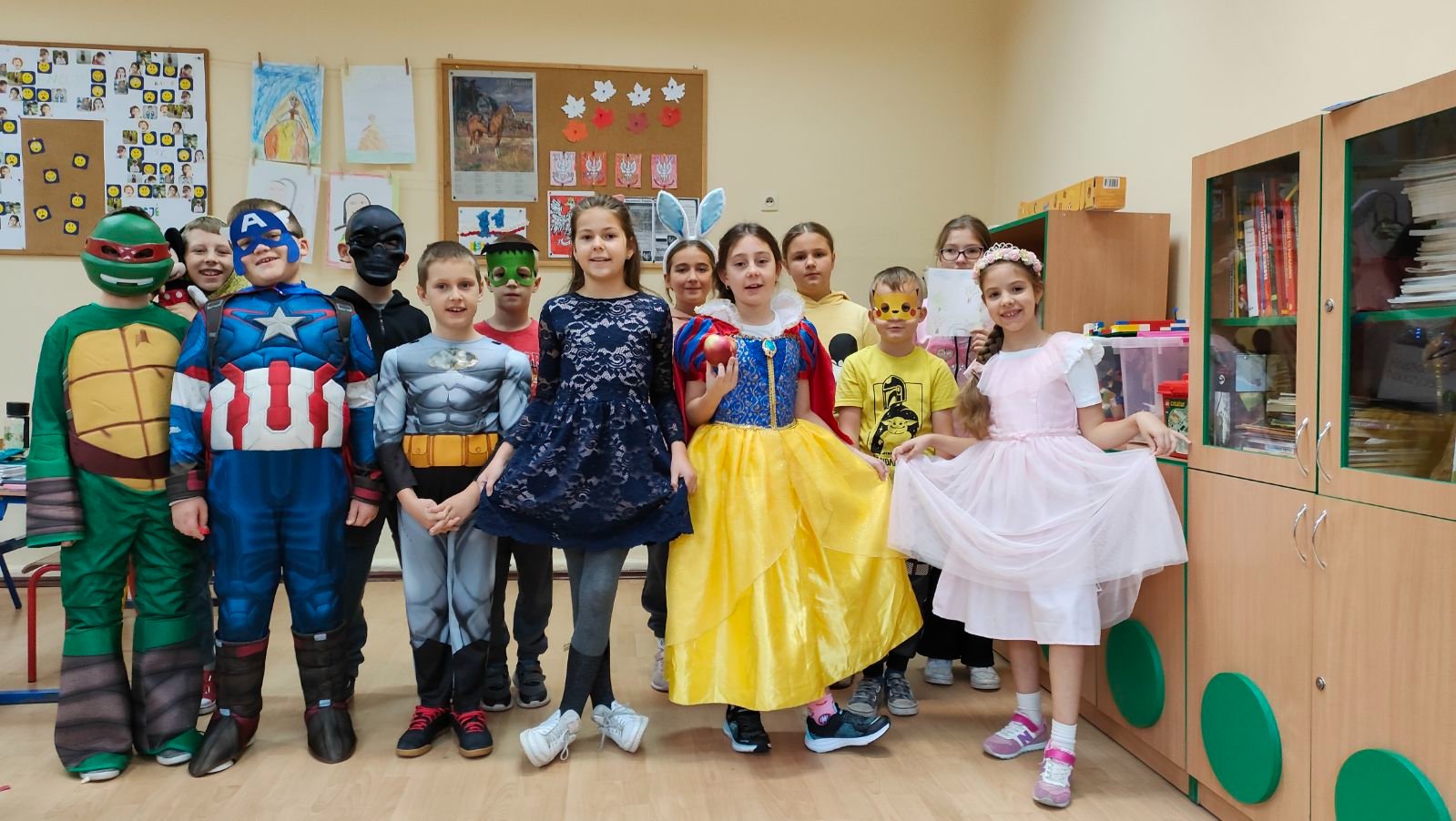 Z tej okazji uczniowie Zespół Szkolno - Przedszkolny nr 8 w Wałbrzychu wyruszyli w niezwykłą podróż do krainy bajek. I "c" udała się na taką wyprawę już 3 listopada. Było kolorowo i wesoło. Dzieci przebierały się w barwne stroje 🥻🥻🥻, uczestniczyły w konkursach i quizach. Wysłuchały fragmentów znanych bajek🧸🔮🪄🎣, a następnie rozpoznawały ich tytuły. Trafnie segregowały bajkowe rekwizyty🎭🎭🎭, układały puzzle 🧩🧩🧩, tańczyły 💃💃💃.