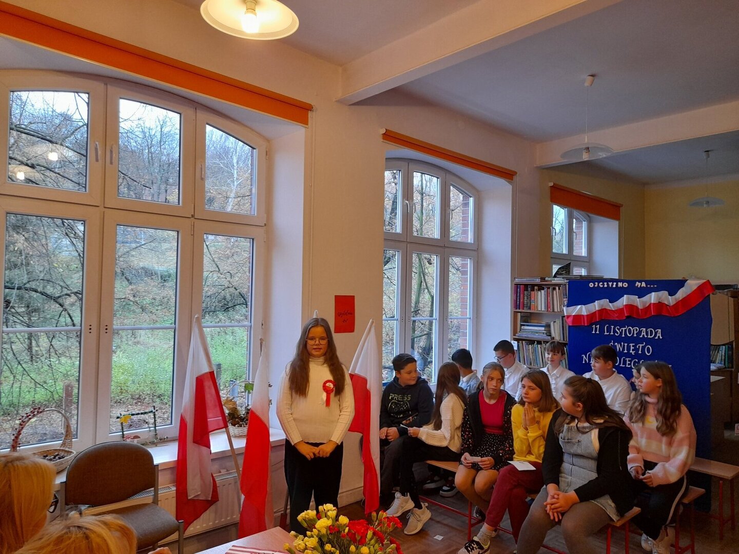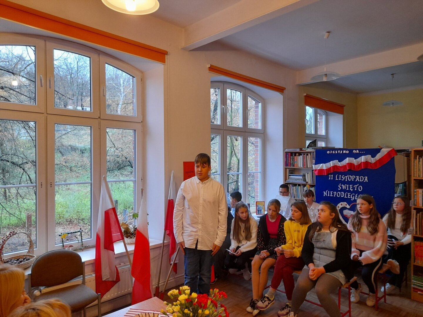 Dzisiaj w naszej bibliotece szkolnej odbył się patriotyczny konkurs recytatorski pod hasłem „Ojczyzno ma…”.