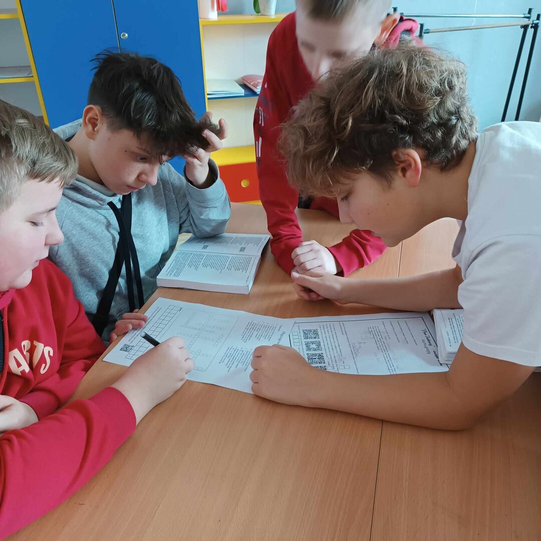 W grupach rozwiązywali krzyżówkę, układali rozsypanki 🧩🧩🧩, grali w grę „Ja mam, kto ma”, a nawet wykonywali działania matematyczne.📏📐📏🎲🎲🎲