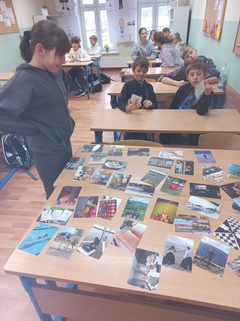 Edukacyjne karty rozwojowe są świetnym narzędziem, które w sposób naturalny prowokuje uczniów do wypowiadania się na temat swoich zainteresowań, pasji, hobby i planów edukacyjno - zawodowych. Uczniowie spośród 50 propozycji wybierali te, które były dla nich najbardziej atrakcyjne i omawiali swój wybór. Pytania po drugiej stronie kart pozwalały nakierować dzieci na odpowiedzi, a tym samym poznać, wskazać im zdolności oraz nazwać umiejętności. Bo poznanie siebie to pierwszy krok do wyboru odpowiedniego dla siebie zawodu.