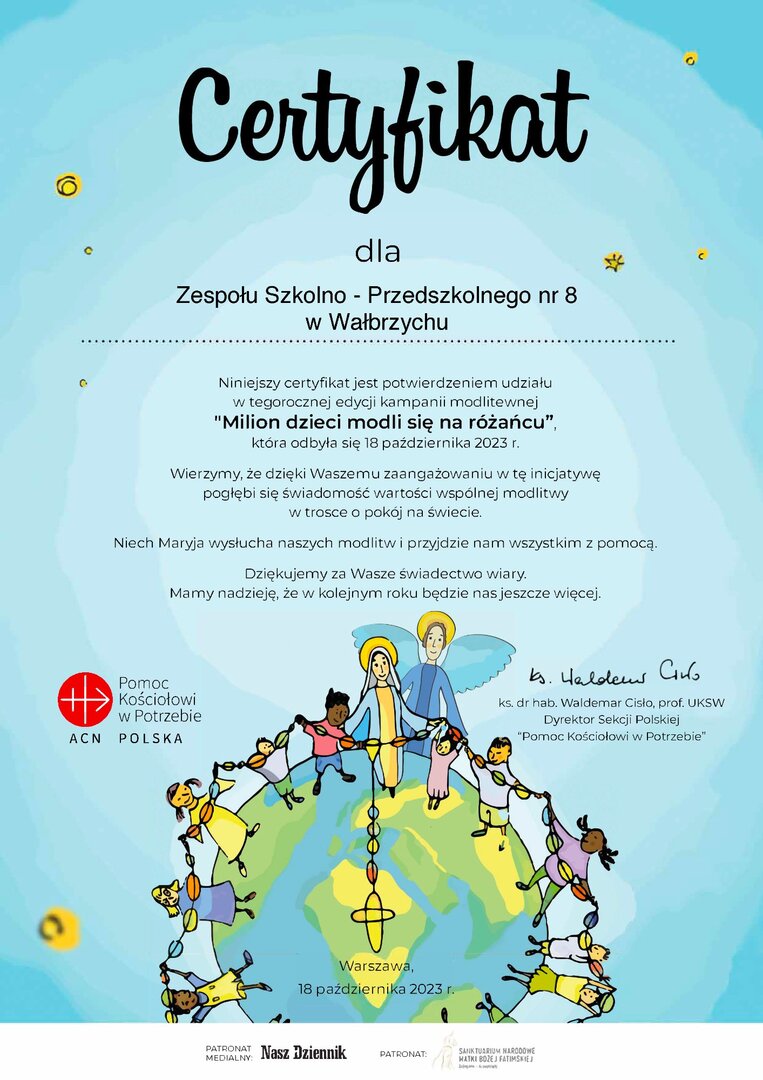 Miło nam poinformować o zdobyciu certyfikatu przez Zespół Szkolno - Przedszkolny nr 8 w Wałbrzychu za udział w modlitewnej kampanii pod hasłem Milion dzieci modli się na różańcu. 💒❤💒❤💒❤💒❤💒❤💒❤💒❤💒❤💒❤💒❤💒❤💒❤💒❤💒❤💒❤💒❤