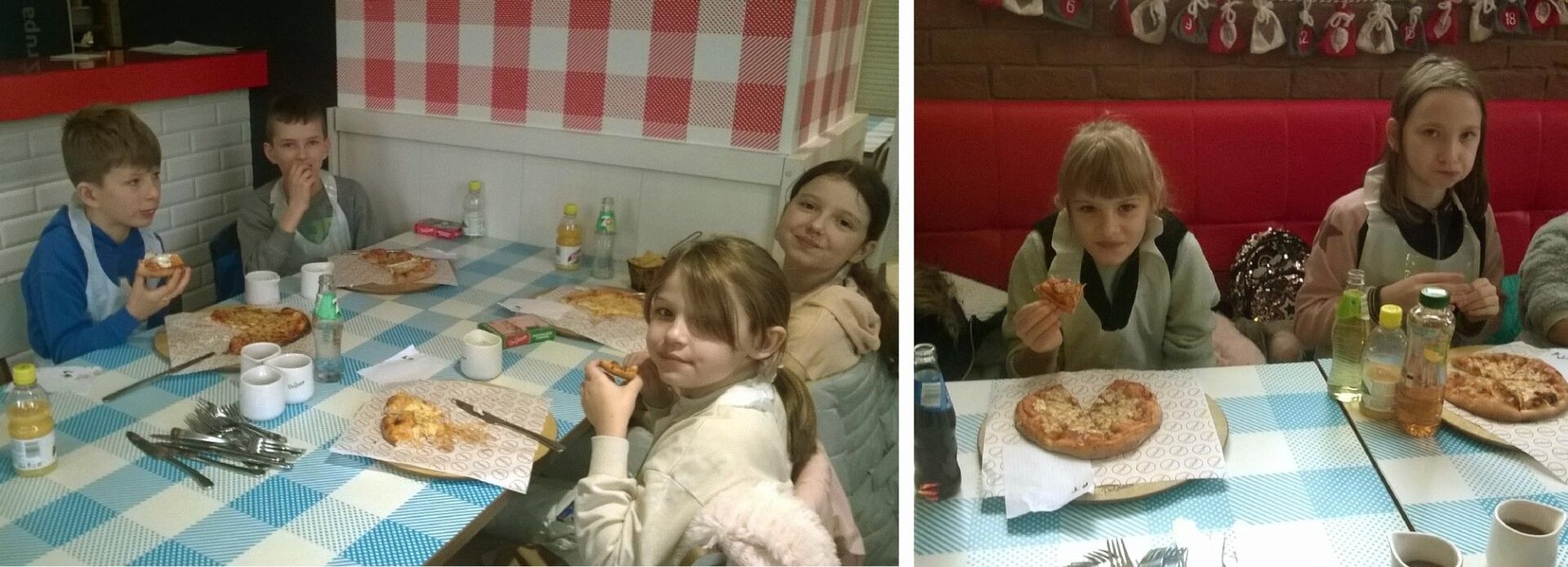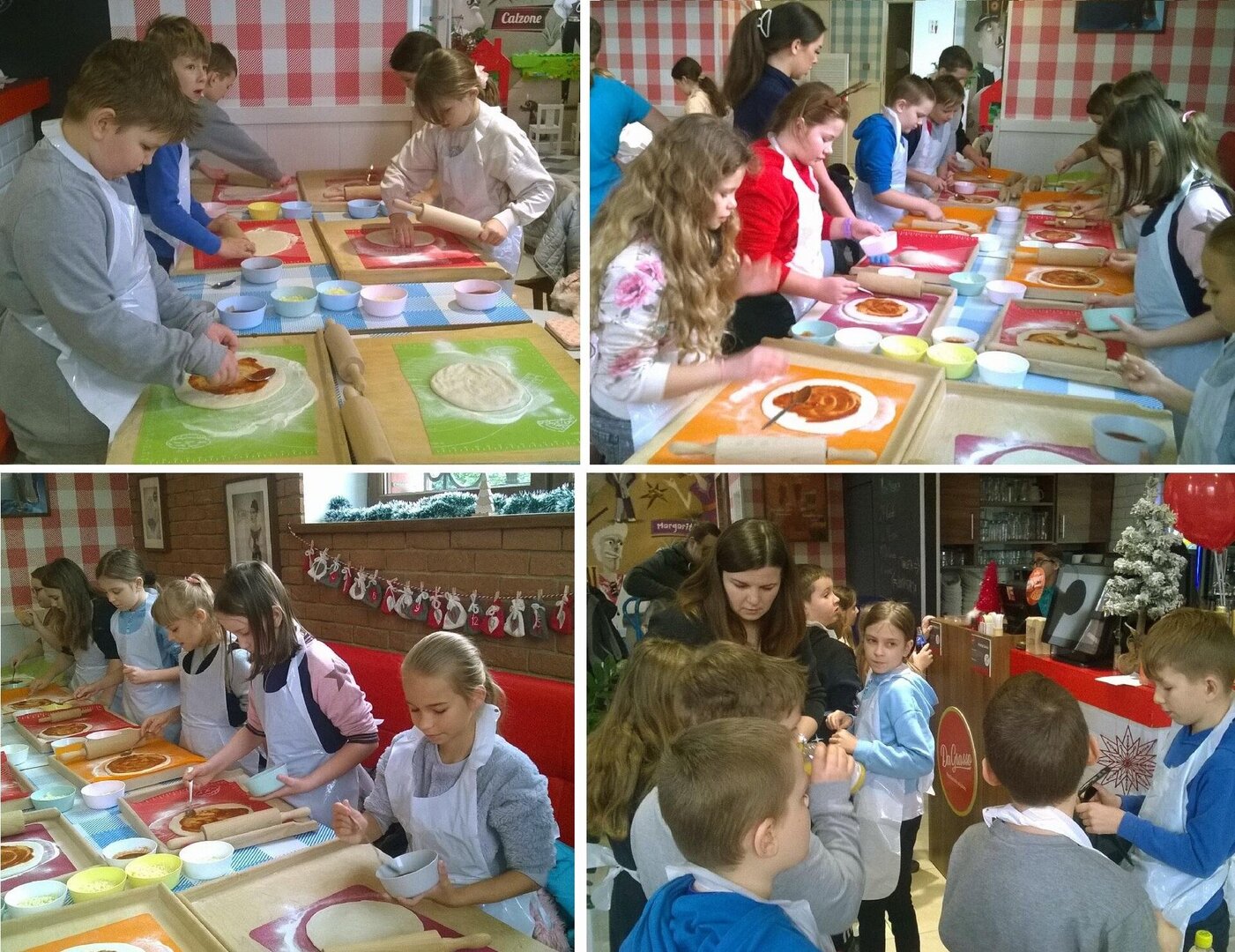 W dniu 6 grudnia 2023 roku w klasie 3b „mikołajki” odbyły się w pizzerii Da Grasso w Wałbrzychu. Zadaniem dzieci było wykonanie własnej pizzy. Dzieciaki z zapałem wzięły się do pracy. Gdy pizze były już gotowe, zostały umieszczone w piecu, gdzie nabierały apetycznego wyglądu i smaku. Dzieci dodatkowo zamawiały sobie frytki i napoje. Panie z pizzerii rozdały dzieciom soki, pamiątkowe prezenty w postaci czekoladowych Mikołajów i pudełka z puzzlami do układania. Każdy z uczestników wycieczki otrzymał Dyplom Ukończenia Warsztatów Małego Kucharza. Potem nastąpiła kulminacja – czyli kosztowanie własnoręcznie zrobionej pizzy – oczywiście każda smakowała! W międzyczasie dzieci miały możliwość pobawienia się w kąciku zabaw. Na koniec – pamiątkowa fotka.