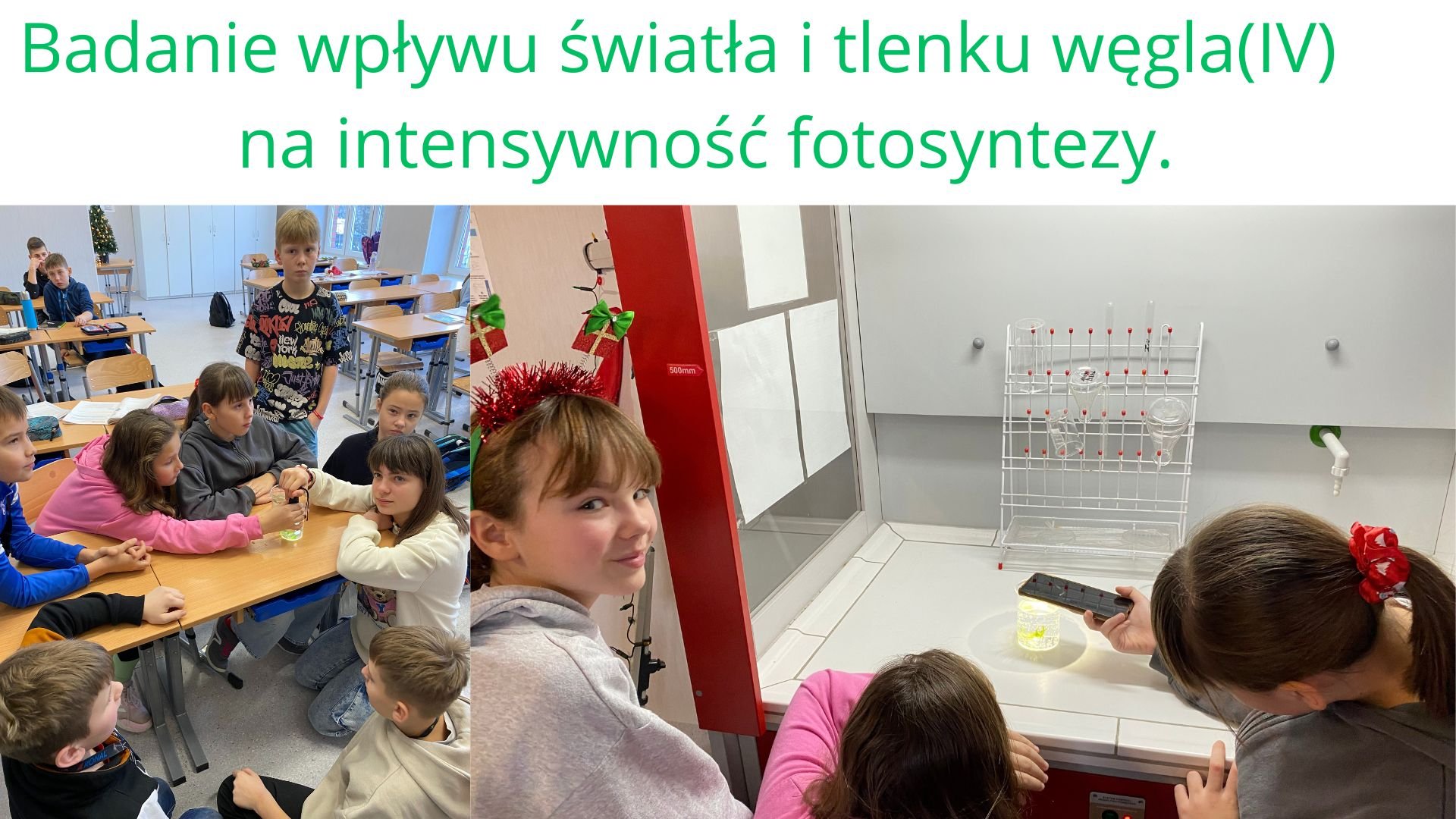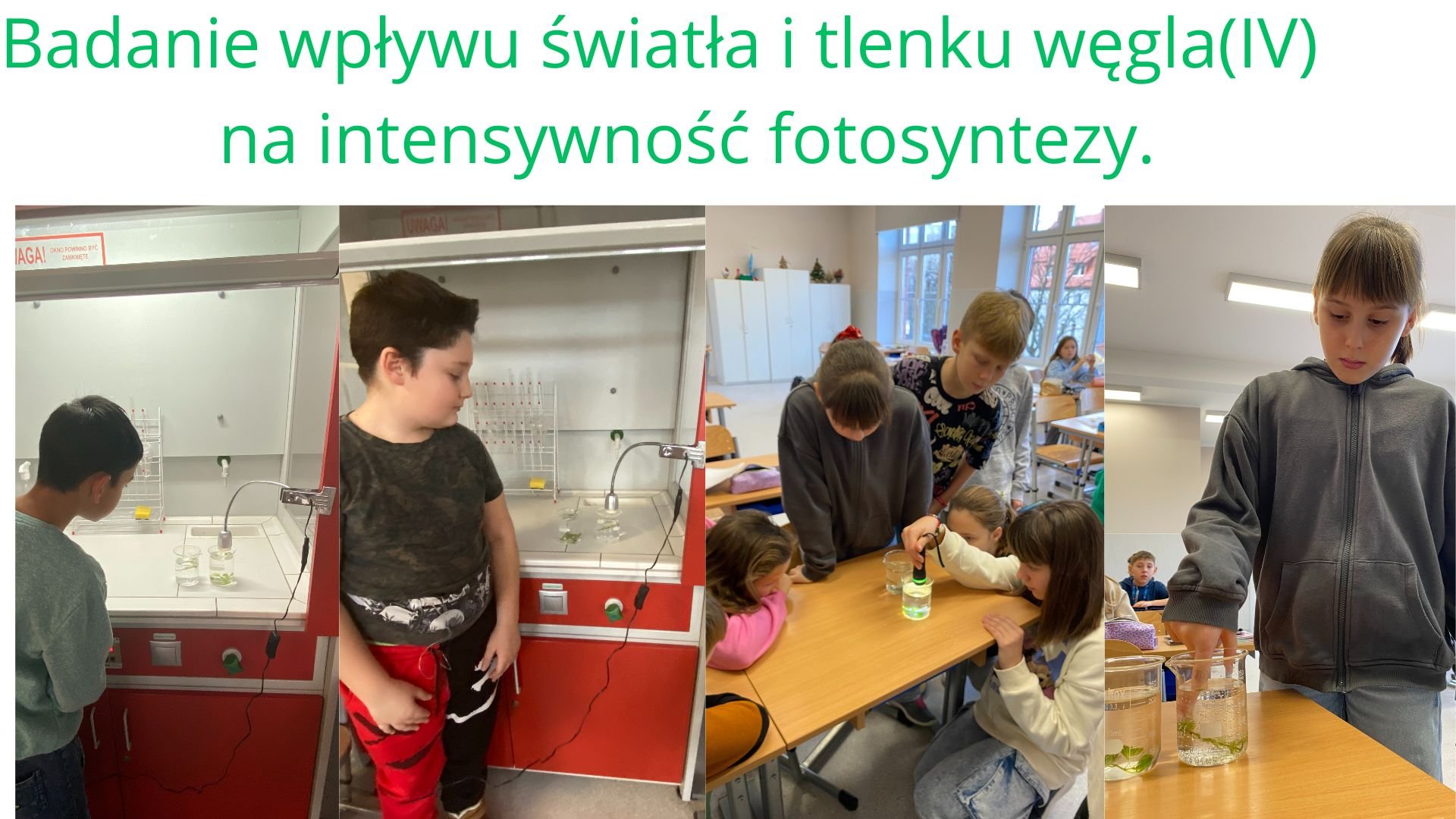Na lekcji biologii uczniowie klas piątych wykonali doświadczenie. Badali wpływ światła i CO2 na intensywność fotosyntezy.