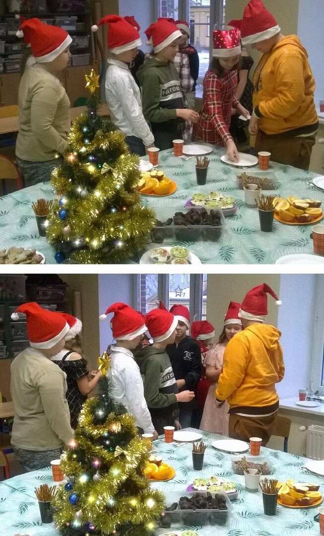 22 grudnia – ten ostatni dzień przed przerwą w nauce minął w świątecznej atmosferze. W tym dniu urządzono dla dzieci klasową wigilię. Najpierw dzieci podzieliły się opłatkiem, gdzieś znikły animozje i waśnie, a wszelkie konflikty poszły w niepamięć. Potem dzieciaki zasiadły do stołu, gdzie kosztowały zakupionych przez mamy słodkości. Nie obyło się bez śpiewania kolęd. Na końcu wszystkie klasy zaproszone zostały na przedstawienie upamiętniające narodziny Dzieciątka czyli Jasełka.