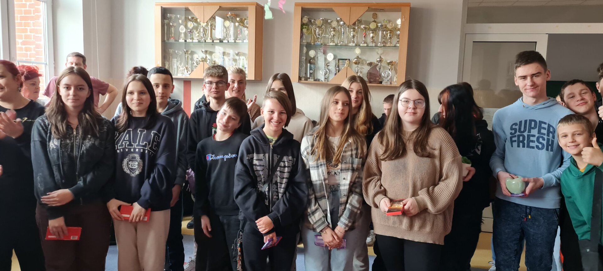 Widzicie tych uśmiechniętych, młodych ludzi? To właśnie oni dbają o to, by w szkole było kolorowo, imprezowo i wesoło! Samorząd uczniowski Zespół Szkolno - Przedszkolny nr 8 w Wałbrzychu: Zosia Górecka (7a), Kasia Koziorowska (7b) i Dominik Pyc (8a) wraz ze swymi kolegami i koleżankami z klas: 7a, 7b, 8a zawsze są gotowi do działania, chętni do pomocy i współpracy z p. Moniką Chapman!