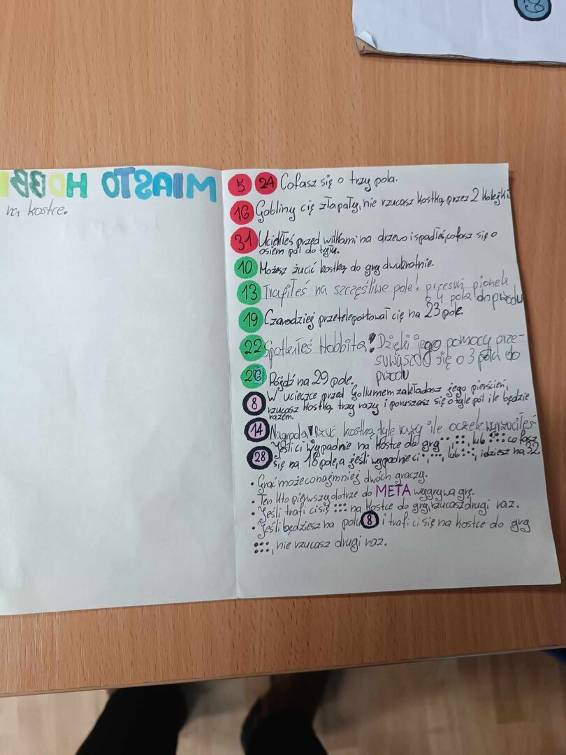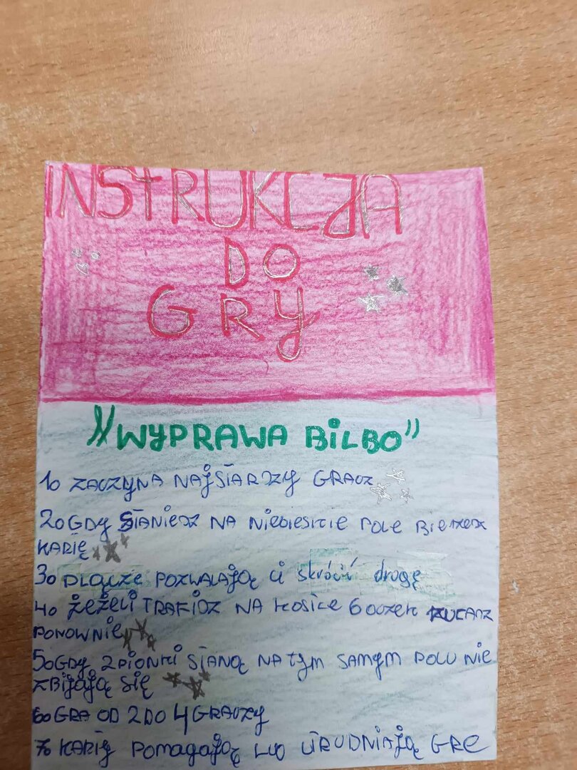 Omawianie treści lektur może być okazją do świetnej zabawy i rozwijania kreatywności. Przekonali się o tym uczniowie klas 6c oraz 8a. Uczniowie klasy 6c podczas lekcji języka polskiego przygotowali gry planszowe, wykorzystując swoją wiedzę o przygodach bohaterów lektury J.R.R. Tolkiena „Hobbit, czyli tam i z powrotem”, w które później sami zagrali, wymieniając się swoimi planszami. Ósmoklasiści przygotowali prezentację wylosowanej wcześniej postaci z powieści H. Sienkiewicza „Quo vadis”. Efekt zaskoczył nawet samych uczniów, którzy przekonali się, że nauka nie musi być nudna, a lektury nie są przykrym obowiązkiem, ale źródłem rozrywki. Wszyscy chętnie zaangażowali się w tworzenie plansz i wykazali się niezwykłą pomysłowością w prezentacji bohaterów.