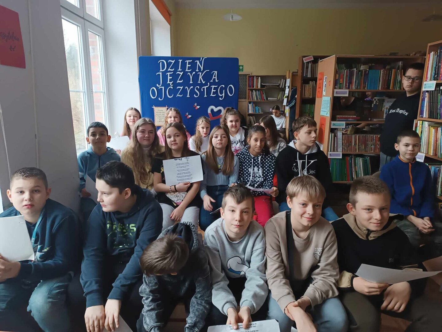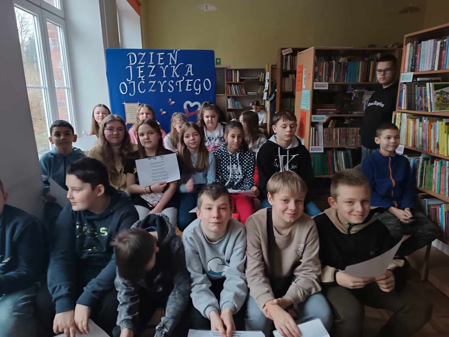 Wczoraj z okazji Międzynarodowego Dnia Języka Ojczystego odbył się w bibliotece szkolnej konkurs, w którym liczni uczestnicy zmierzyli się z łamańcami językowymi oraz testem badającym poziom czytania. W szanownym jury zasiadły: pani dyrektor Renata Gibes, pani wicedyrektor Małgorzata Leszczyńska oraz pani Agnieszka Drubko. Wydarzenie zostało przygotowane przez panią Elżbietę Bibrowską oraz panią Magdalenę Urbanek.