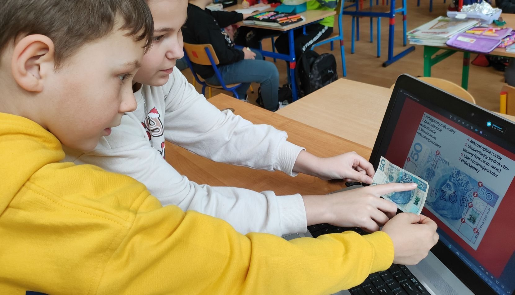 Po projekcji dzieci samodzielnie wyszukiwały zabezpieczeń na banknotach i oceniały ich skuteczność :).