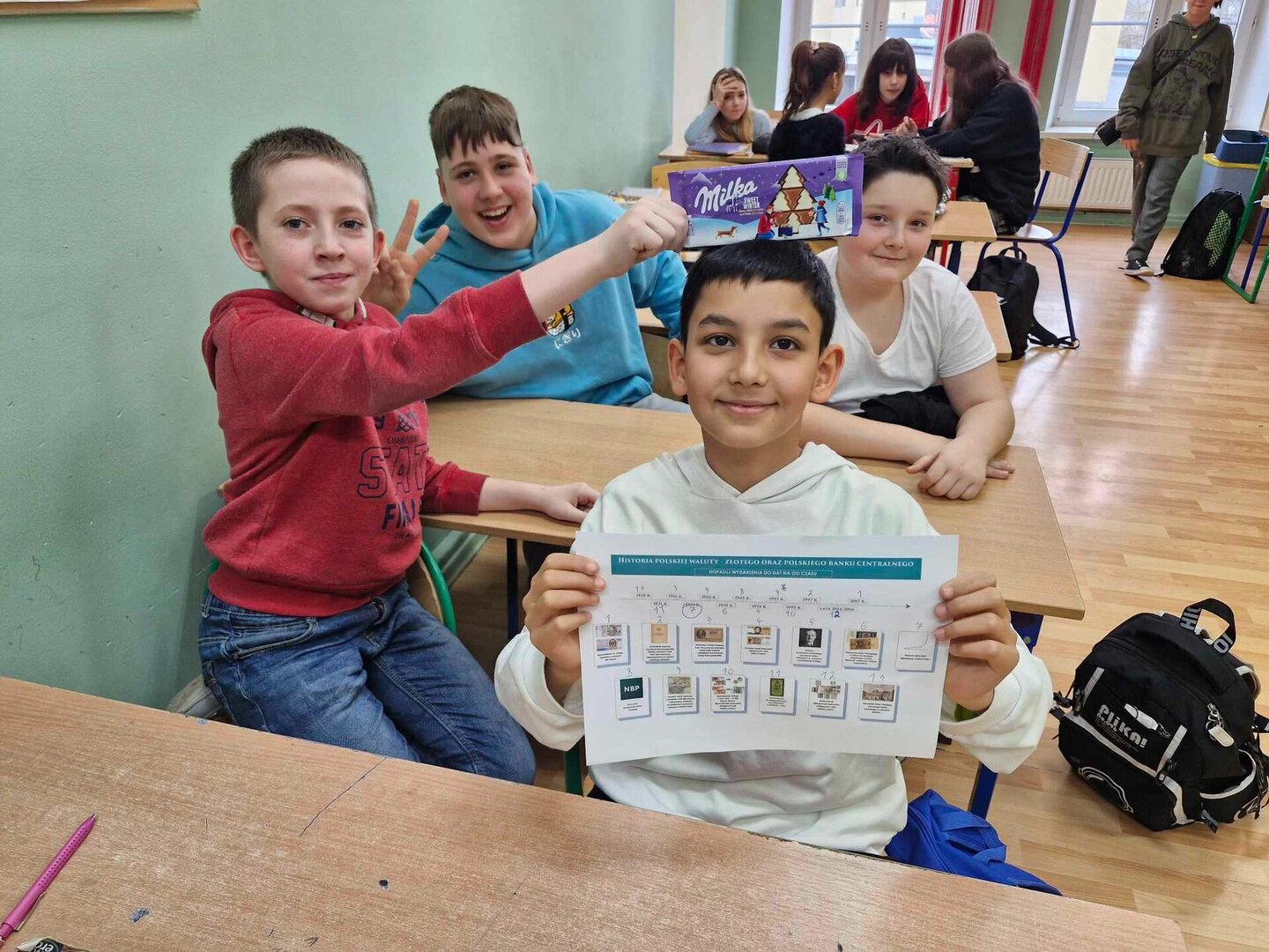 W efekcie nasi zdolni uczniowie potrafili wymienić przykłady nazw monet przed pojawieniem się złotego, poznali i umieli uporządkować najważniejsze wydarzenia w historii rozwoju polskiej bankowości centralnej, określali rolę banku centralnego w funkcjonowaniu gospodarki, aktywnie uczestniczyli w uzupełnieniu kart pracy, doskonaląc współpracę pracy w grupach, z uwzględnieniem podziału zadań.