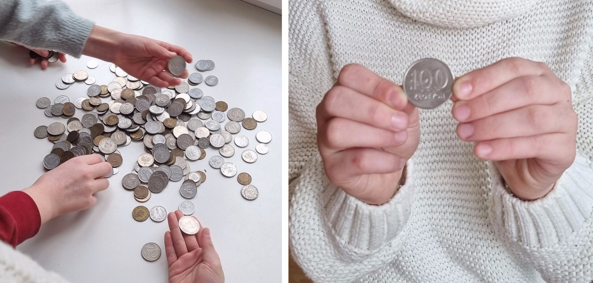 Wychowawczynie pokazały swym podopiecznym pieniądze z lat 70-tych – czyli np. złotówki w wydaniu aluminiowym.
