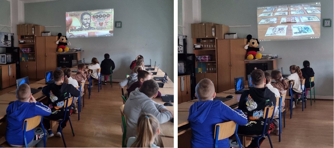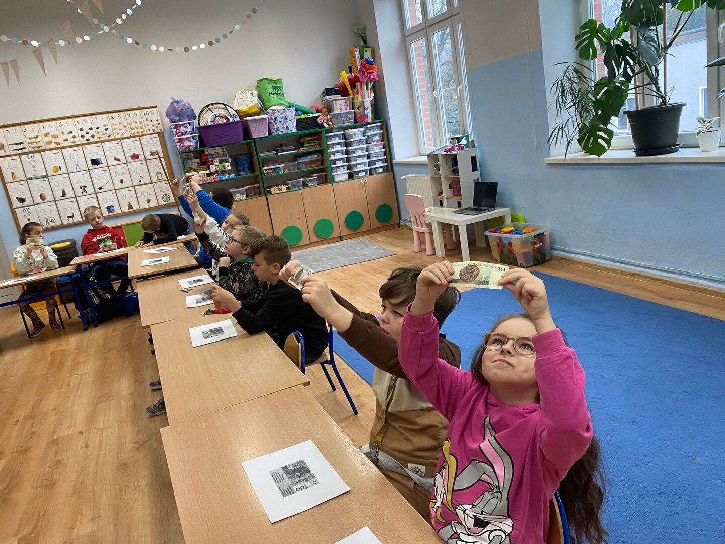 jest „fałszywką”. Ponadto dzieci uczyły się rozpoznawać zabezpieczenia znajdujące się na poszczególnych banknotach.