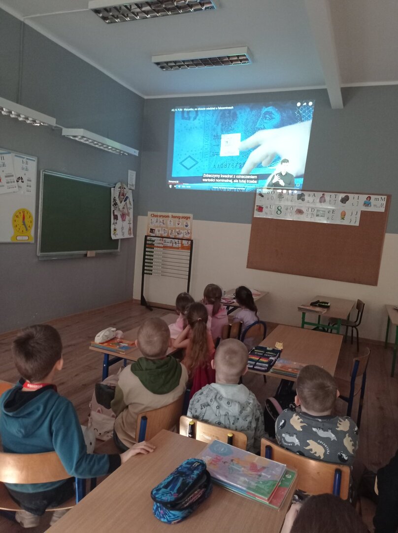 Uczniowie obejrzeli film o walucie, która obowiązuje w Polsce, dzięki czemu wiedzą jak wyglądają polskie banknoty, jakie mają nominały oraz jakie posiadają cechy charakterystyczne.