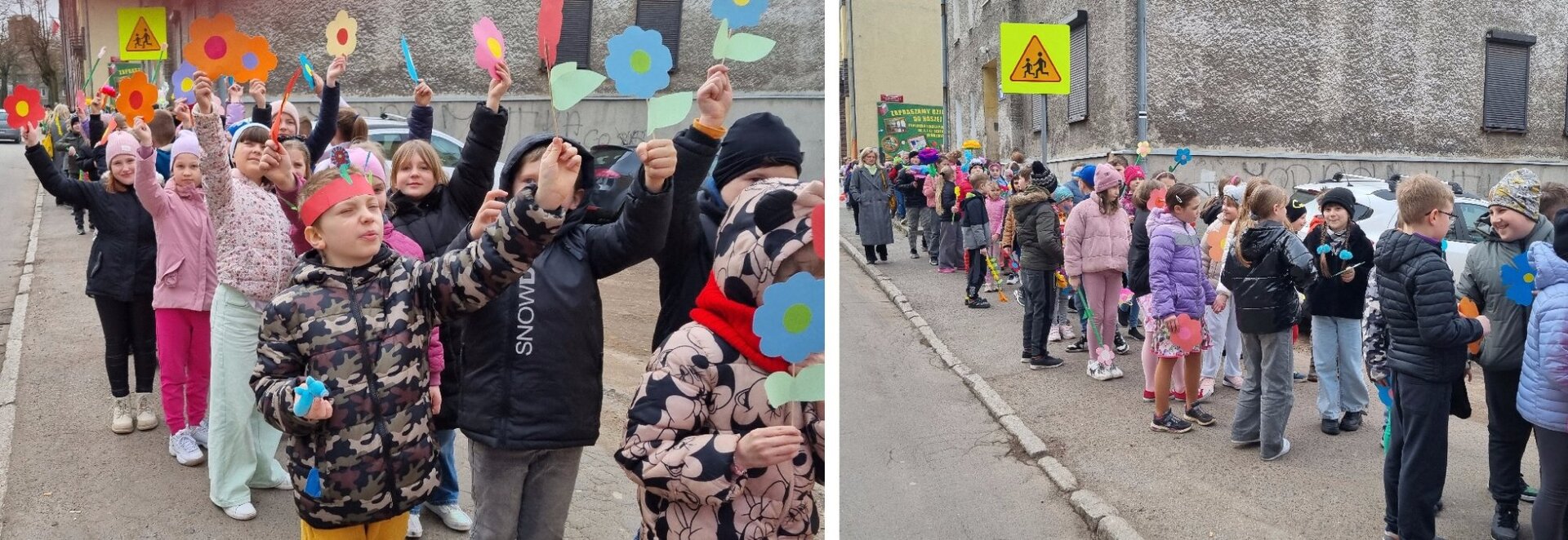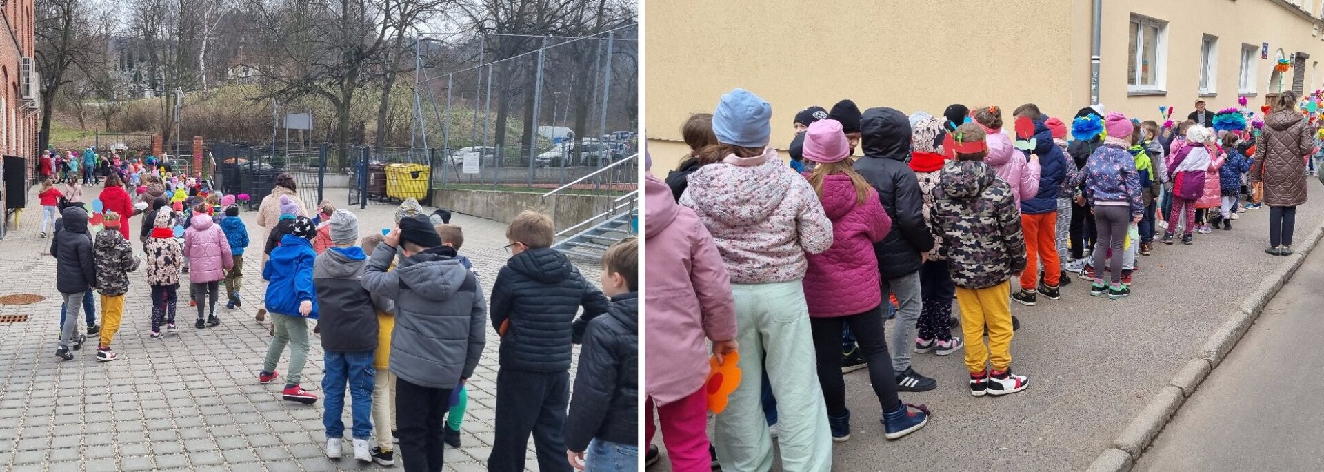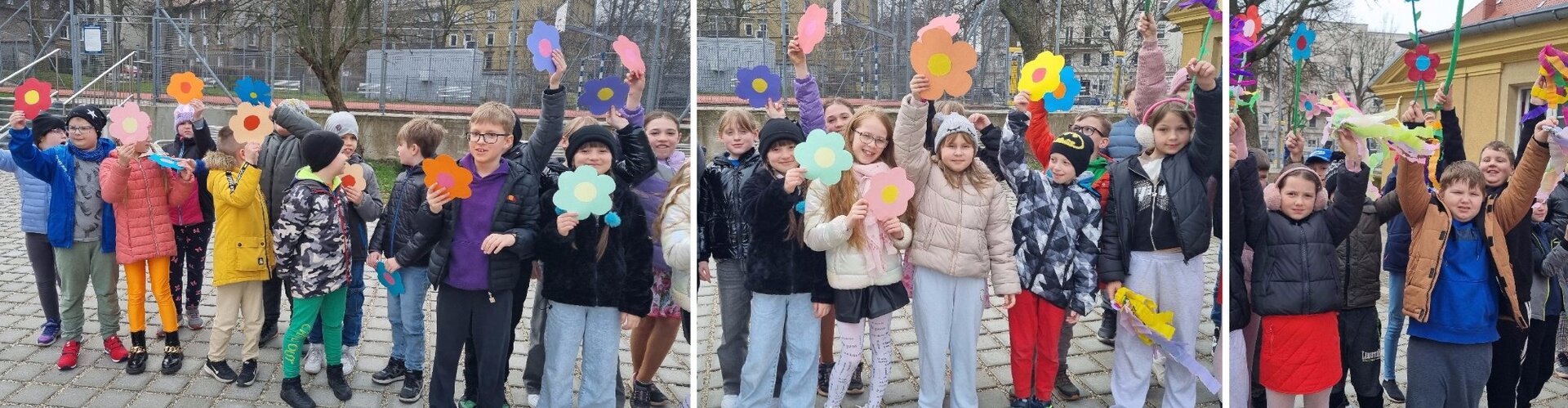 🌺🌷🌺🌼🌷 21 marca w końcu przyszła do nas dawno oczekiwana i wytęskniona wiosna. Klasy 1-3 postanowiły powitać ją kolorowym, kwiecistym korowodem. Wszystkie zespoły zebrały się na placu szkolnym. Szybkie fotki i ruszyliśmy ulicami Podgórza. Dzieci witały tą pełną nadziei porę roku okrzykami „Witaj wiosno! Żegnaj zimo”. Idąc ciągiem pieszym, ten radosny pochód zajmował cały chodnik. Wiosna została powitana i będzie z nami przez najbliższe trzy miesiące! 🌼🌷🌼🌺🌼🌺❤👣🌷🌼🌺👣🌼