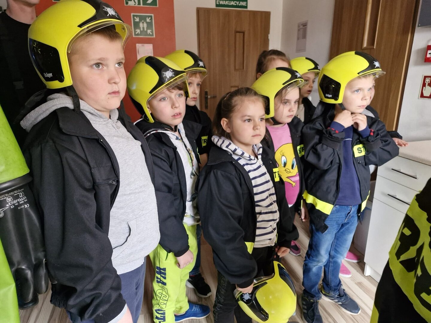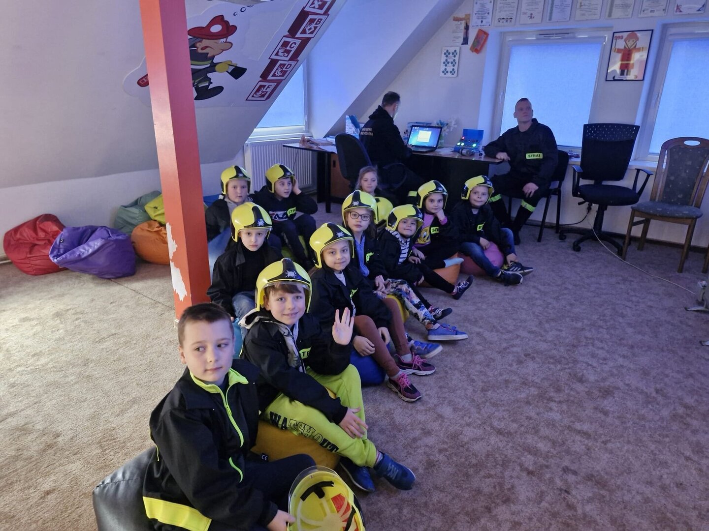Pierwszoklasiści ćwiczyli bezpieczną ewakuację i jak wezwać pomoc w razie niebezpieczeństwa.