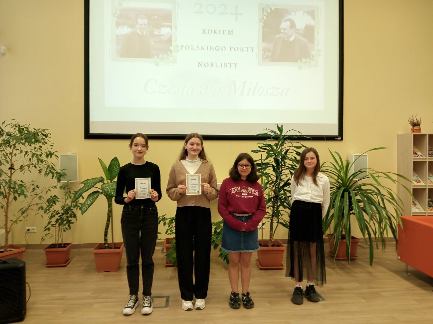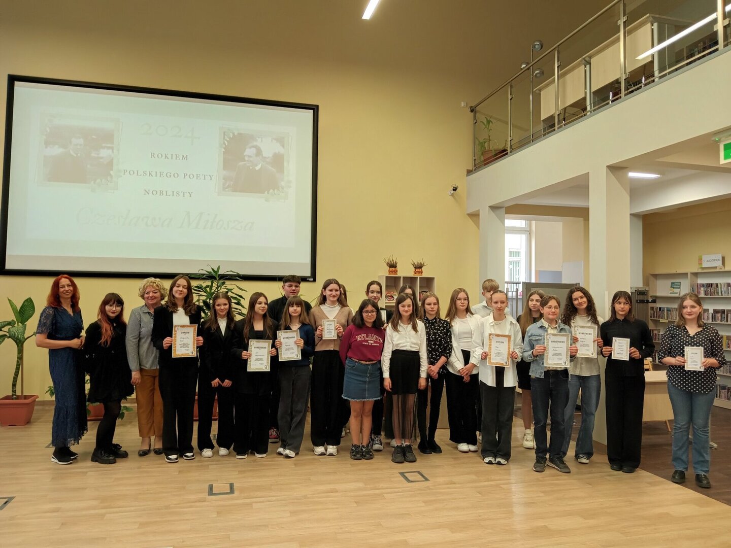 Dzisiejszy dzień był wyjątkowy dla uczennic, które miały okazję wziąć udział w IX edycji konkursu Mistrz Pięknego Czytania. To wydarzenie, organizowane przez Multimedialną Filię Biblioteczną, poświęcone było twórczości wybitnego polskiego poety, Czesława Miłosza. Chociaż uczennice nie zdobyły głównego tytułu, ich występy były pełne pasji i zaangażowania, co jest równie ważne😊