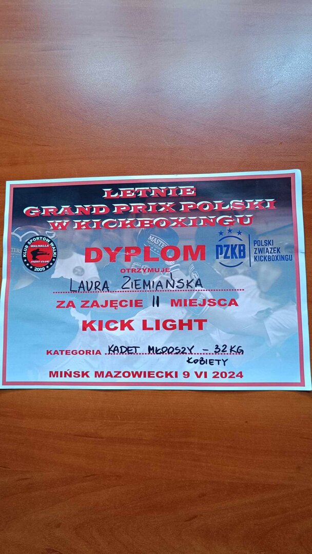 Serdecznie gratulujemy Laurze Ziemiańskiej, uczennicy klasy 4a za zajęcie II miejsca w Letnim Grand Prix Polski w Kickboxingu Kick Light w kategorii kadet młodszy, waga 32 kg kobiety.