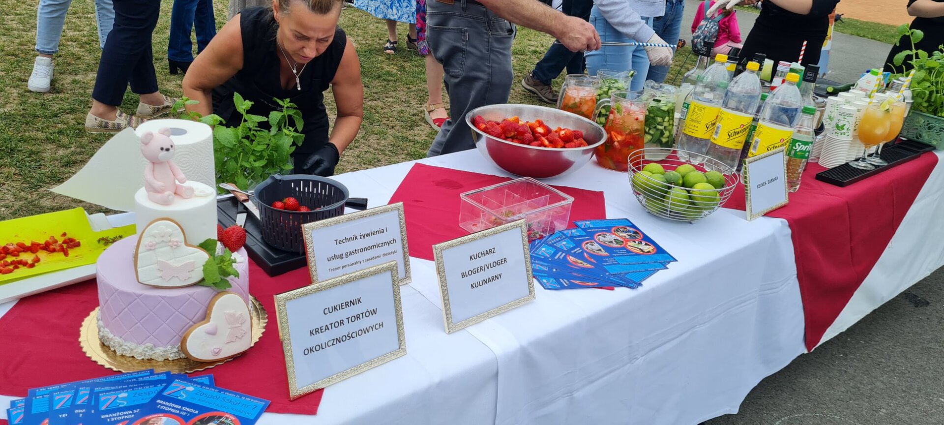 Swoje stoiska przygotowały również średnie szkoły, włącznie z pokazem np.pracy barmana itp.