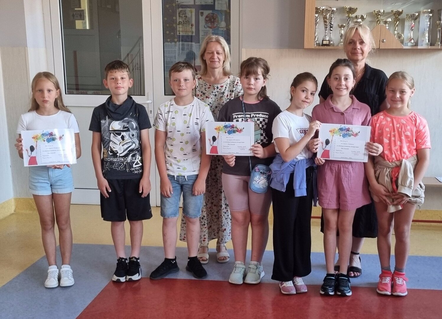 Wczoraj odbył się ostatni apel klas młodszych, na którym pani dyrektor, Renata Gibes, wręczała dyplomy w konkursach plastycznych oraz w szkolnym konkursie ekologicznym dla klas trzecich (1 miejsce drużynowo zajęła 3c, 2 miejsce - 3a, 3 miejsce - 3b).