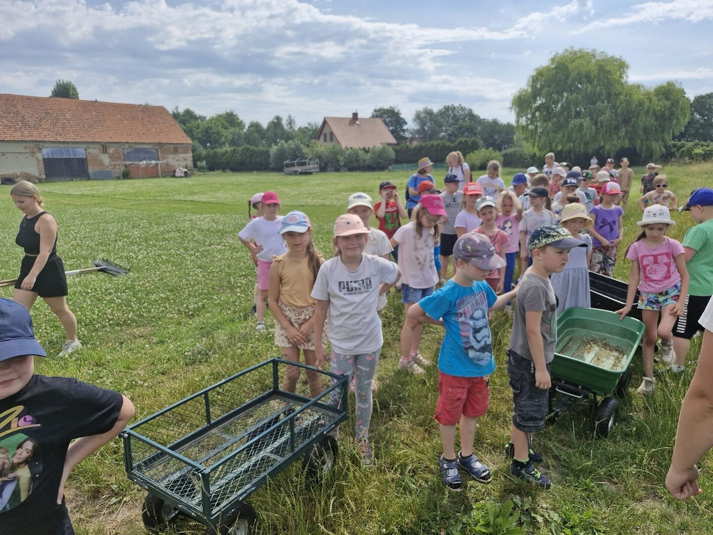 Dzisiaj klasy pierwsze brały udział w warsztatach edukacyjnych w zagrodzie edukacyjnej "Ostoja nad Młynówką".