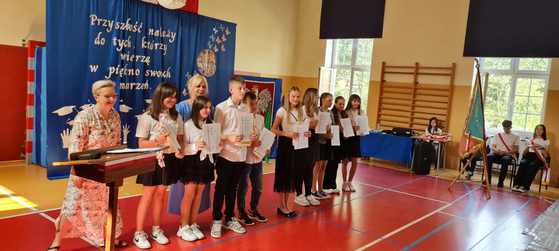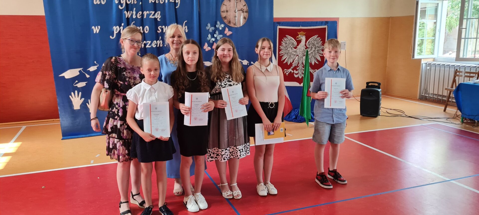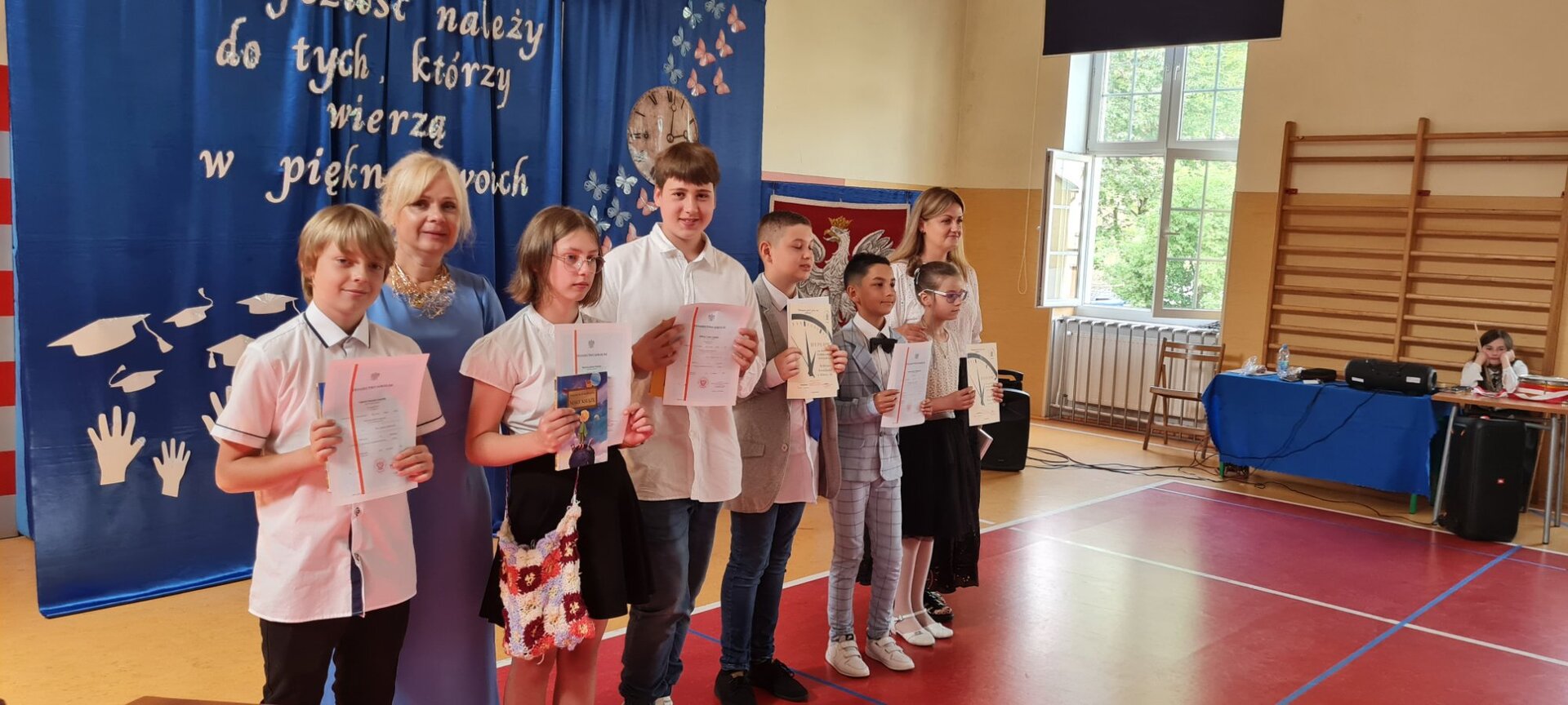 Uroczyste zakończenie roku szkolnego klas 4-7 za nami 😘😘😘😘! Z tej okazji najlepsi uczniowie otrzymali świadectwa z paskiem oraz upominki, nagrodzono również dzieci osiągające wysokie wyniki w sporcie (m.in. Dawid Włodarski z klasy 6a, Bartosz Kowalski z klasy 6c, Laura Ziemiańska z klasy 4a, Jan Sajdak z klasy 6c, Jan Majka z klasy 5b), osoby prężnie działające w szkolnym samorządzie oraz rozdano dyplomy za najwyższą frekwencję i wyróżnienia zdobyte w prestiżowym konkursie matematycznym (Tomasz Szablewski, Wiktor Sosiński).